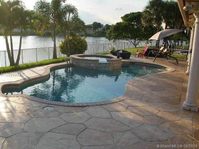 This home is located in Silver Falls in Miramar & is in Move In Ready condition. Great 4/2 with a Heated Hayward Salt water system Pool and Spa over looking a large beautiful lake with breath taking sunsets. Large Covered patio for all your entertaining events. Stainless Steel Appliances & Granite counter tops in kitchen. Ceramic tile throughout & New water heater installed. Home has 6 Upgraded ceiling fans & Front Load Washer & Dryer. Great Community with guard gate, close to all shopping & schools.