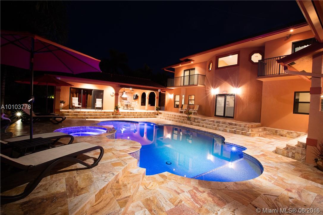 Unbelievable estate in the heart of Hollywood lakes, a total of 5 BR 4.5 BA, 3 car garage, covered patio w/summer kitchen. Main house features 4 BR 3.5 BA w/water views+detached 1/1 Inlaw quarters. Vaulted ceilings/Crown moldings. Eat-in Kitchen, cooking Isl/SS high end appliances/wood cabinets/Granite countertops/Dbl oven. Generator. Resort style Pool w/Jacuzzi, travertine Patio/LED color lights. Electric security gate. Solid CBS/Strong Metal Roof & designed w/high Elevation to weather storm.