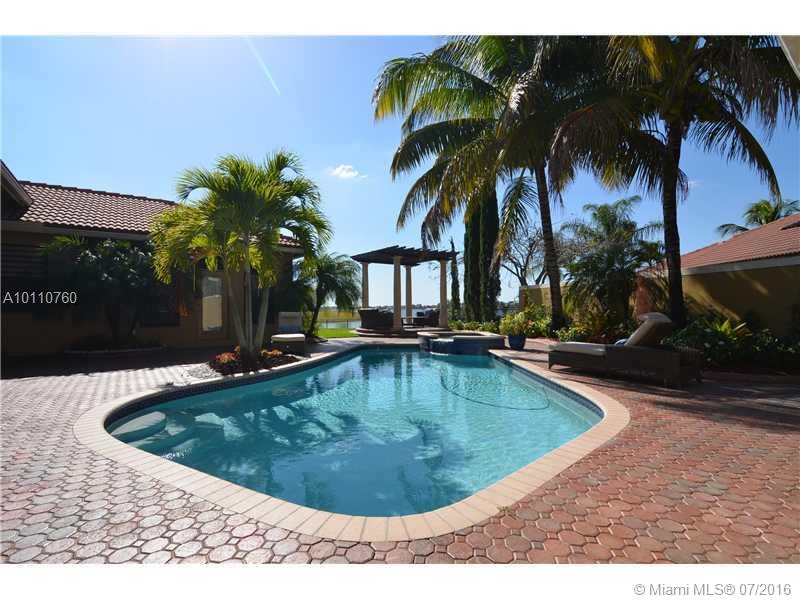 Beautiful Lakefront courtyard home, fronts one of the largest panoramic lake views in SW Broward. This Courtyard home boats an incredible 7 beds, 5 baths,,Detached guesthouse, a custom pool & spa, inside you will find cherry wood cabinetry with granite counter tops & stainless steel appliances in the kitchen,marvel,wood floors, salt water pool, security cameras, mosquito mosquito misting system many more upgrades. Make his resort style residence A must.