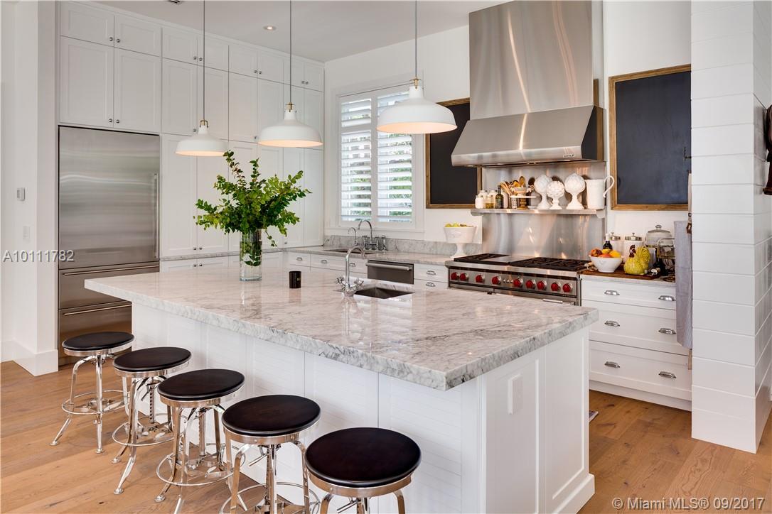 Stunning show stopper! South Gables new construction. Casual Elegance with open kitchen, large family and living area. 11' ceilings, wide plank wood floors, chefs gourmet top of the line kitchen, all overlooking outdoor covered terrace and pool. Impressive summer kitchen, perfect for entertaining and dining alfresco. High end sound and security system. Spabath- Designer closets- elevator- second floor terrace and balconies. Car garage fits 1 1/2 cars.