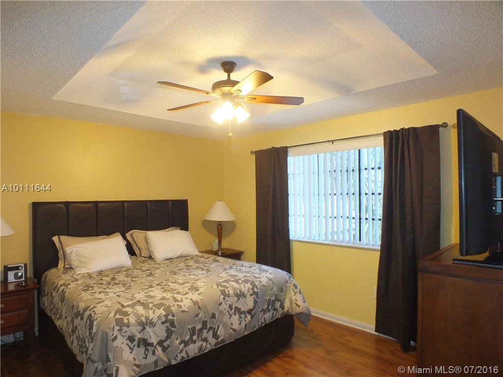 4/2/1 one car garage In Security Guard Gated Community. Large square footage with Stainless steel appliances and tile and laminate flooring throughout. Corner unit with huge backyard and tons of guest parking. Backsplash in kitchen. Large bedrooms and new fans. Home features living room, dinning room, and family room, and kitchen area. Beautiful laminate flooring all matching upstairs. Low Maintenance/monthly fees. Washer and Dryer to be replaced. All windows are tinted and all new blinds.