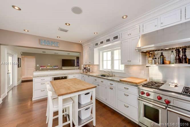 A HAPPY place to call HOME! 10800 sf corner. Full 2007/8 gut/remodel. Double glass door to lofty foyer, limestone floor. IPE wood floors, impact throughout. Great natural light and cool palette in soothing living spaces. 3/2 family wing with lavish master/2 walk-ins, playful kids rooms. Functional Home Office for 2. Stunning Chef’s gas kitchen . 1/1 guest/staff. Great family/media. Mom’s dream super neat,fun playroom (conv garage). Quiet street,. High ceilings and great light throughout