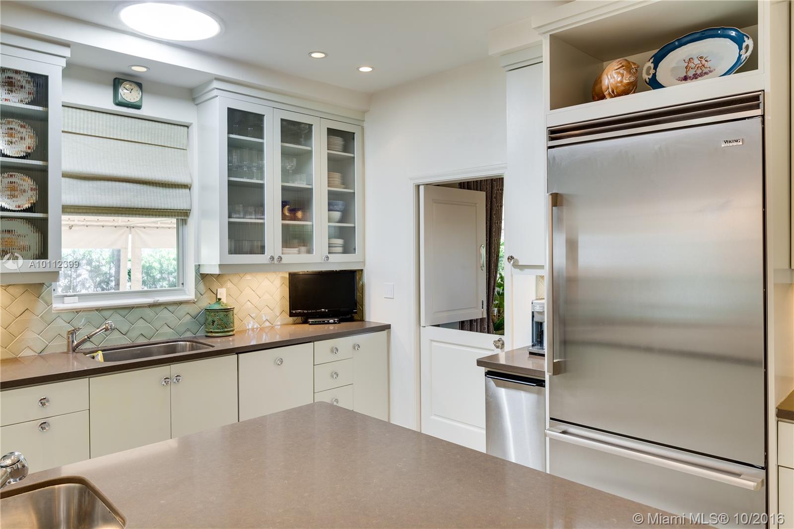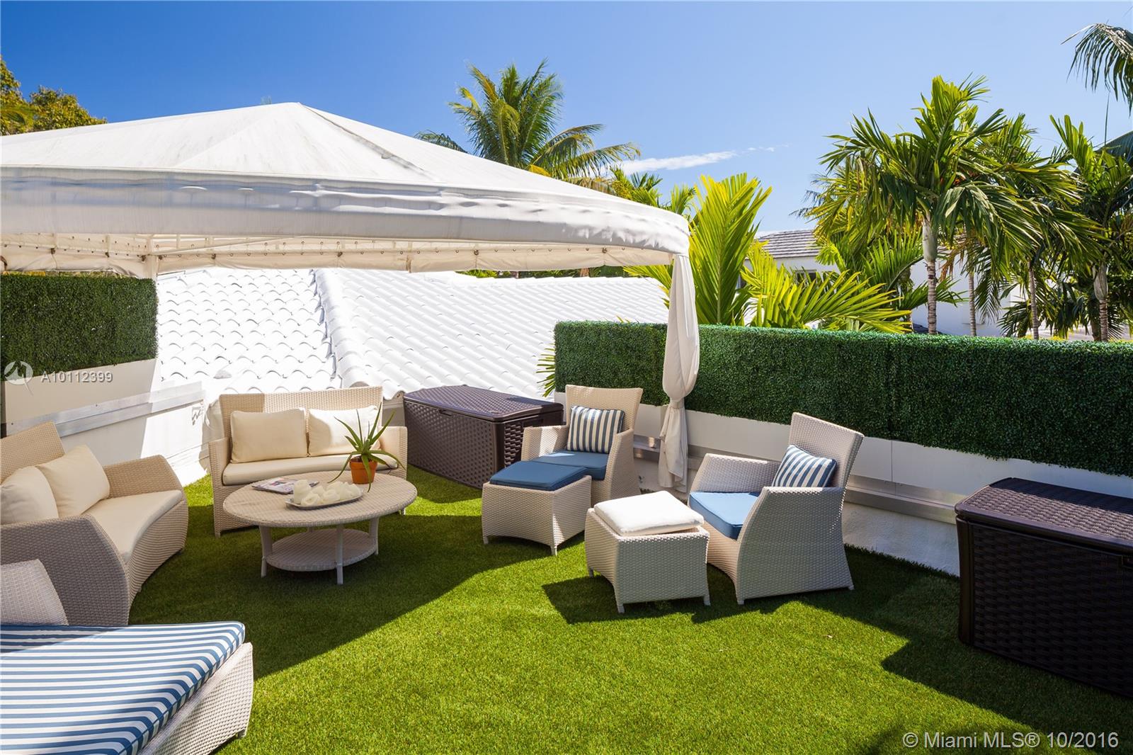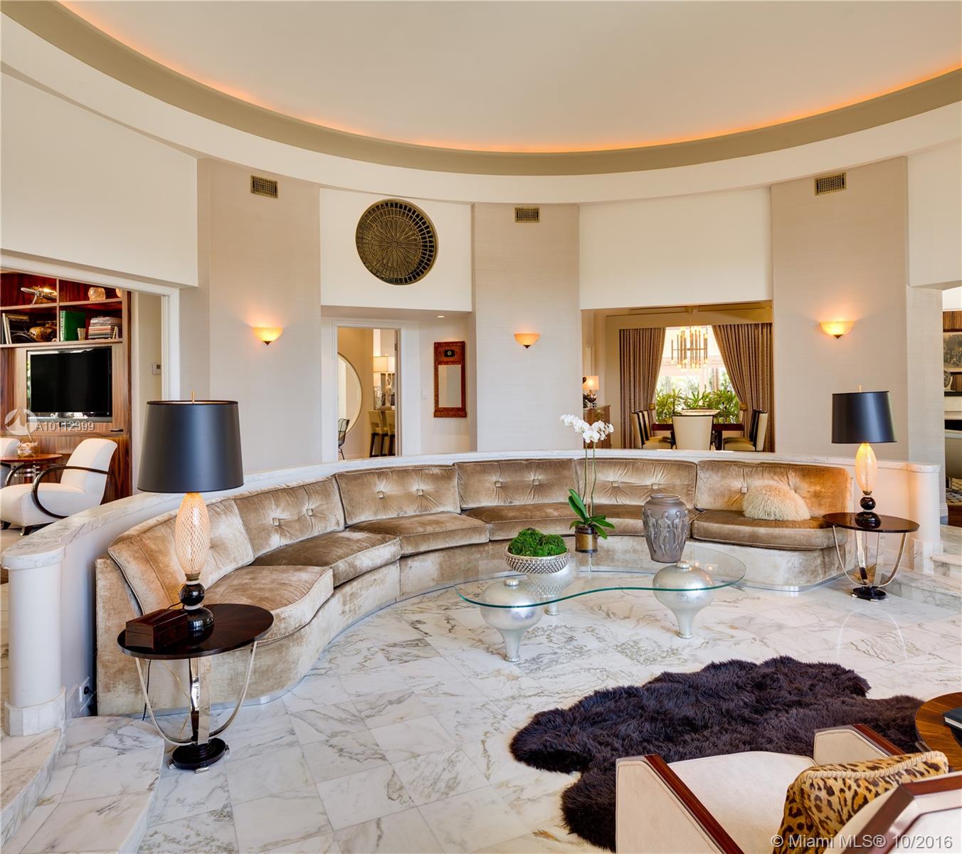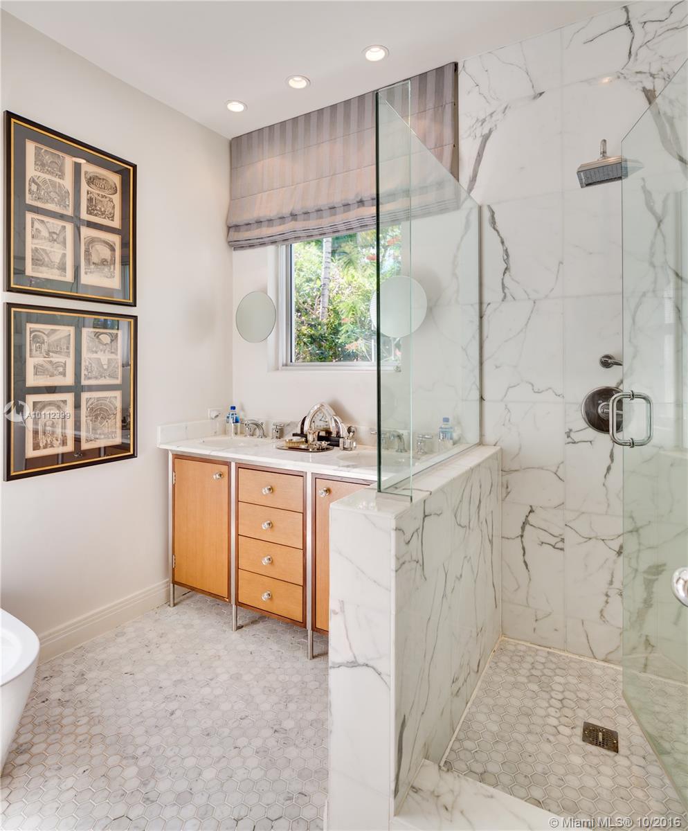 Absolutely beautiful art deco/mid century renovation by world renowned architect Anton Skitzowitz w/ the most value on Miami Beach, a MUST see. Interior features include volume ceilings throughout, a limestone fireplace w/ Macassar wood surround, hardwood floors, & a grand sunken rotunda with marble floors, 15' domed ceiling & cove lighting. Bedrooms are all en suite, master custom closet, & rosewood built-in cabinetry in middle bedroom. Windows & doors are impact. Gourmet kitchen has high end appliances.