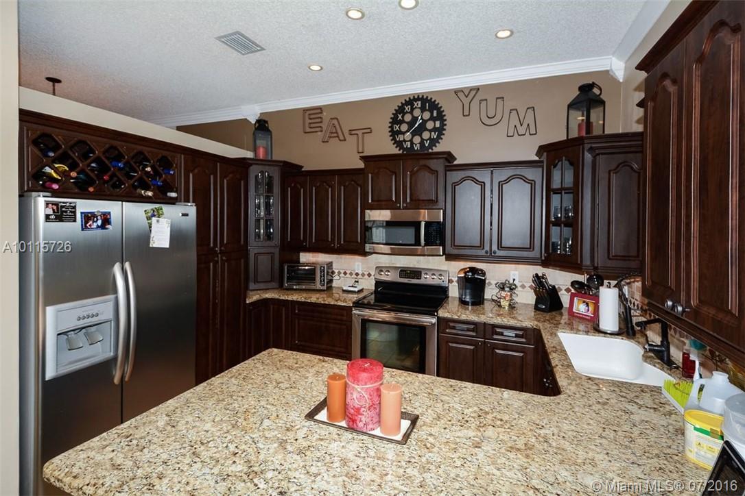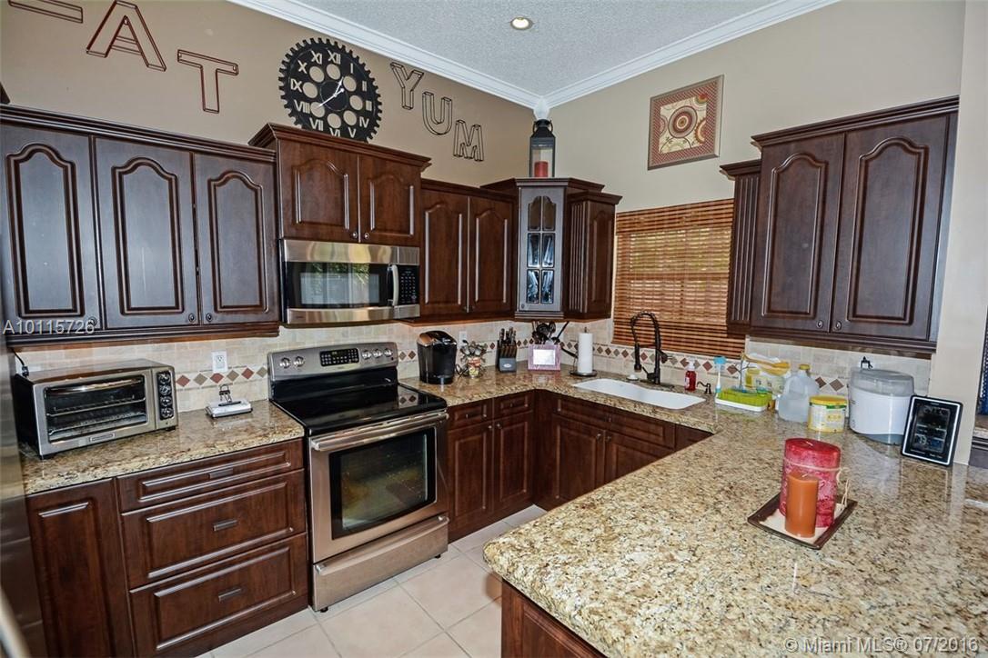 Beautifully upgraded Diplomat in turn-key condition. Gorgeous kitchen with dark cabinets and granite. Flowing floor plan with split bedrooms and large family room. Upgraded baths, closet cabinetry, laminate floors, crown molding and more. Master bath has dual vanities, shower and roman tub. Private lot with no neighbors in back. Electric awning and patio. Hurricane shutters. Royal Palm is a quaint gated community in the heart of Davie. Easy access to highways & shopping. Excellent schools. A must see.