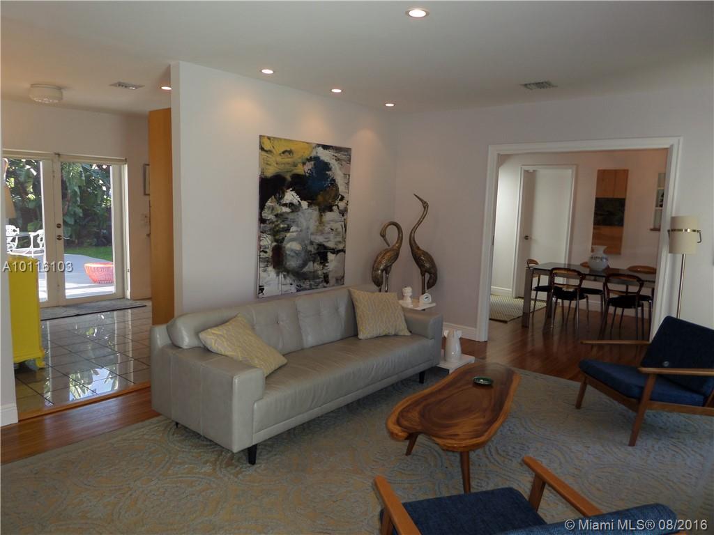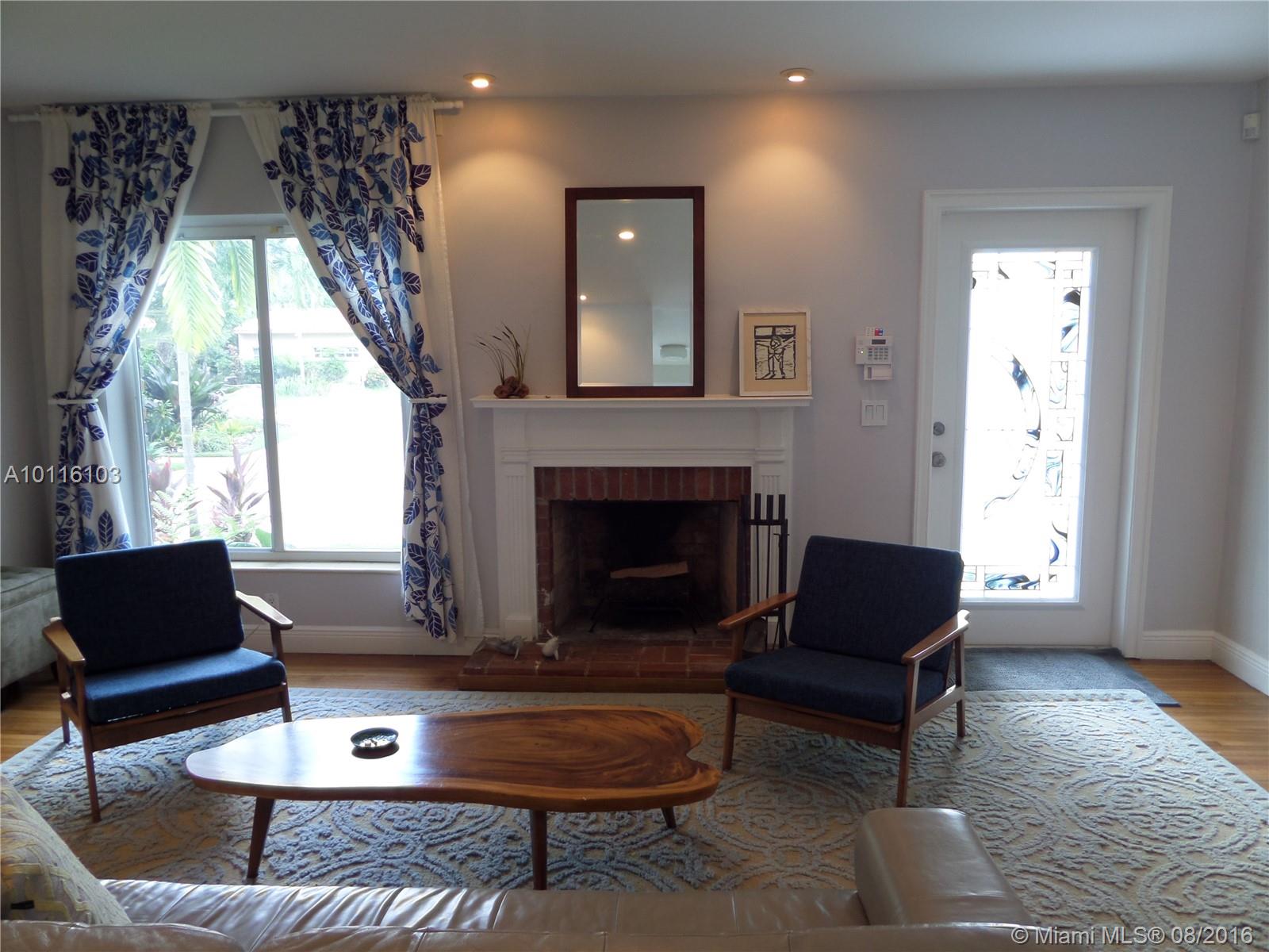 Lovely renovated 3/2 home, w/eat in kitchen, granite tops & backsplash, dbl sink.SS appliances, spacious solid-wood kitchen cabinets & pantry. Huge master bdrm w/additional sitting area w/direct access to large outdoor deck & tropical fenced-in yard, 2 walk in closets, 12' high ceiling. 2 renovated bathrooms, MBath w/Jacuzzi, lots of closet space, wood floor, fireplace, recessed lighting, 2 A/C units, garage, new impact windows & doors, wash/dryer, shutters, beautiful tropical landscaping.