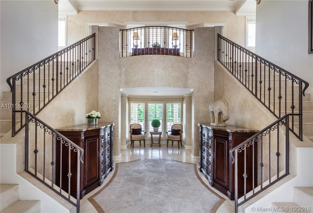 Located in esteemed Gables Estates, this extraordinary gated luxury home provides 181 ft. of expansive waterfront along with a 52 ft. dock. Design elements include a grand staircase, coffered and tray ceilings, crown moldings and travertine floors. Relax in the master suite with loft-style sitting room and spa-like bath. Home features indoor/outdoor spaces great for entertaining. All bedrooms contain en suite bathrooms and views overlooking the canal, sparkling pool, or beautifully landscaped garden.