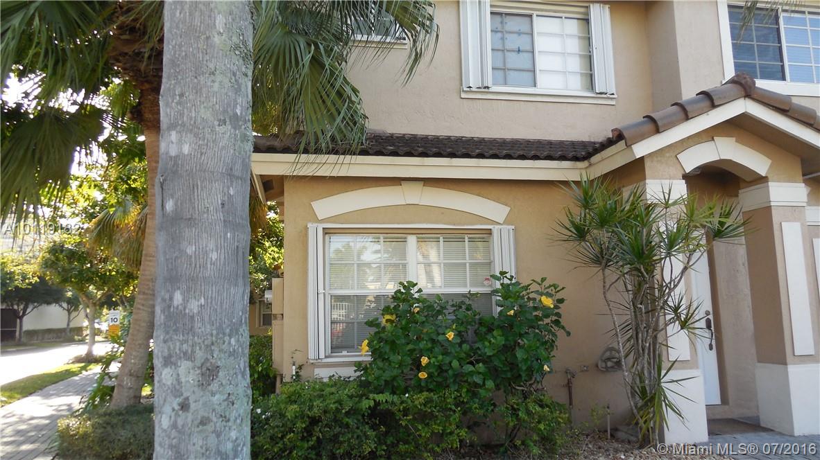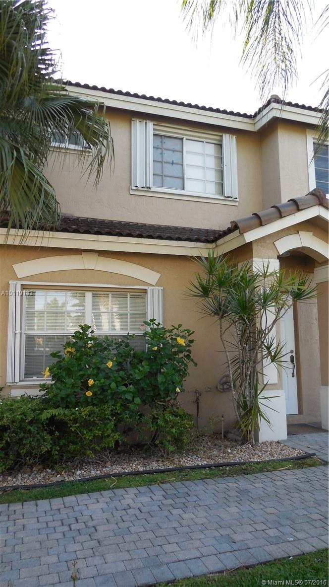 Beautiful Townhouse 2 story, Corner unit 2 bedrooms 2.5 bath (each Bed with their private bathroom) and half bath downstairs.(1470 S/F) Balcony,storage,reserved parking. New cabinets with granite counter tops, ceramic tile on first floor and laminated floors on second floor. Spacious living and dining areas. A/C unit (2011). Accordion Shutters. Gate community, playground, tennis court, pool and gym.Minutes away from Dolphin and International Mall,Florida Turnpike and Palmetto Expressway.Near best schools