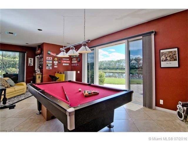 Located the prestigious community of The Landings, this beautifully landscaped home has 5 beds, 3.5 baths, a huge Game Room, and a 3-car garage on a 1/3 acre lot. The screened pool leads to a spectacular lake view. The kitchen has been remodeled and recti fied porcelain floors have been added to the living areas. This home features newer appliances & AC units. The patio area has a unique wood deck and pergola, along with an outdoor kitchen, which is perfect for entertaining.