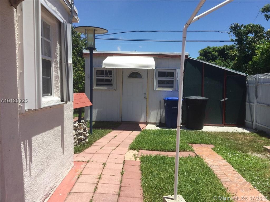 Lovely home on a quiet street with nice curb appeal, Move in condition. 3 Bedroom 2 Full Bath. Living room, Formal Dining room, and nice updated Kitchen. Covered front porch and entrance has metal fence and gate with stamped concrete driveway. Newer windows & Accordion shutters. Newer AC. Fenced back yard with Fruit trees and large full sized shed + Alley way area for exercising. Newer Electric panel, Sprinkler system & newer Drain field. Close to Aventura Mall and short drive to the beach.