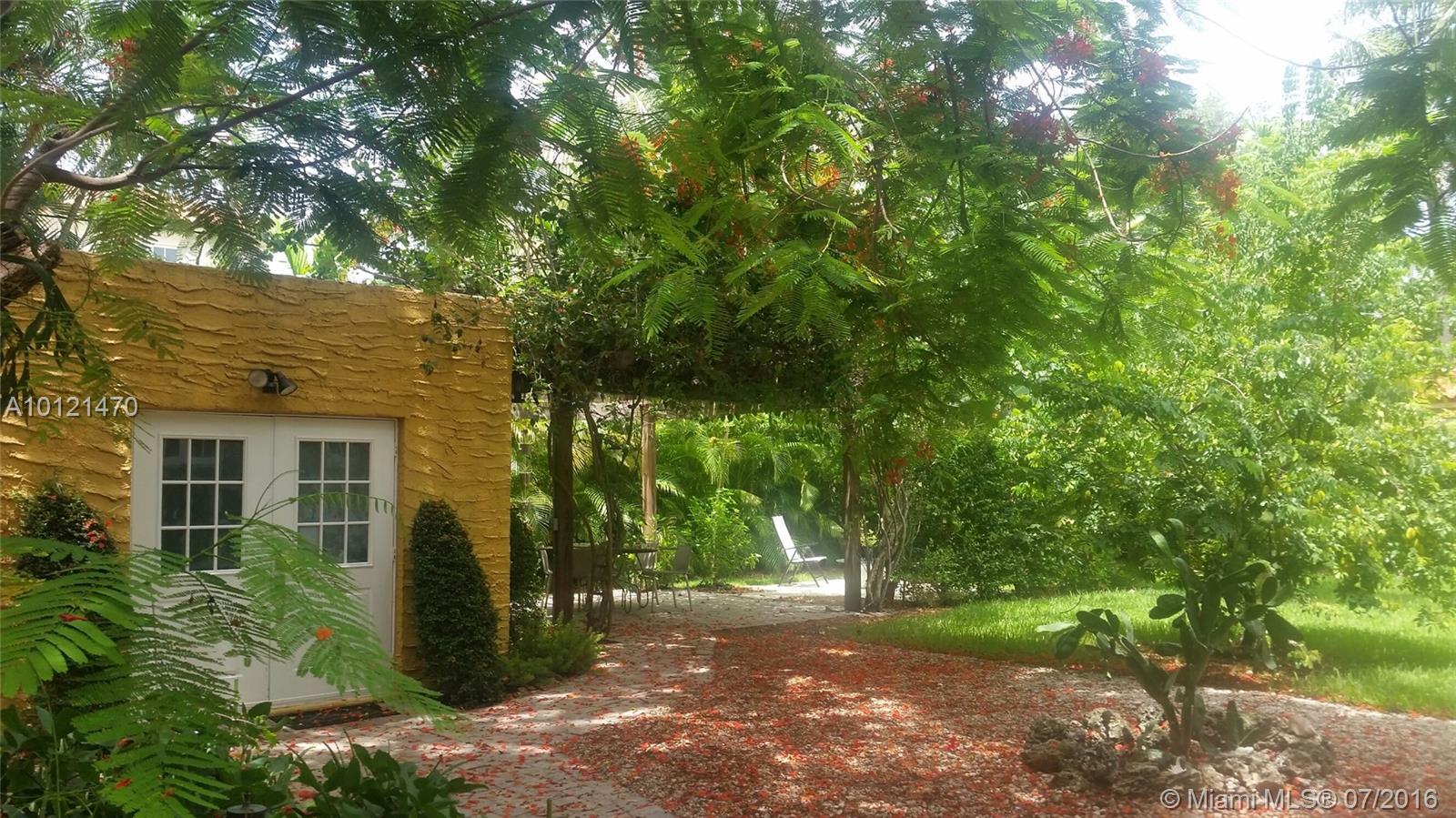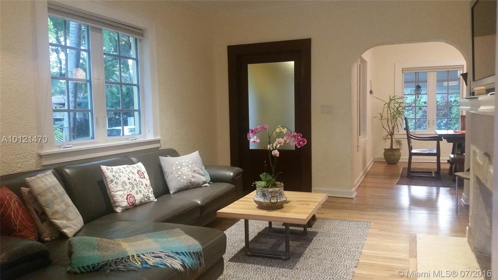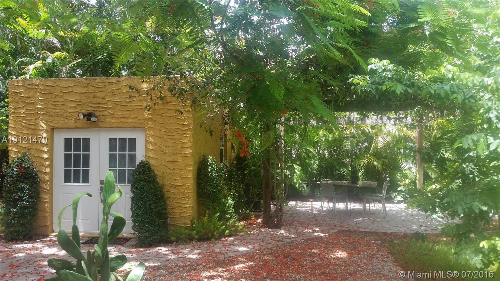 Prime Gables location, beautiful tree-lined quiet street, walking distance to Merrick Park & Miracle Mile restaurants, shops and businesses; wonderful 11000 sf lot, a variety of fruit trees, foliage & herbal garden, ultimately a true inspiring setting with a tropical atmosphere, overall a home filled with charm and curb appeal; 2-story Old Spanish offers 3 bedrooms, small office, wood floors, recessed lighting, SS appliances, hurricane impact windows and room for expansion.