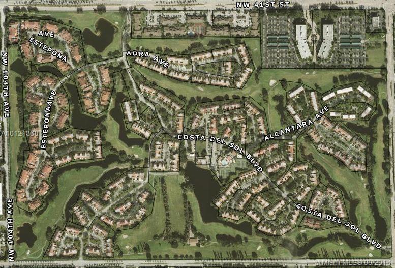 Costa del Sol is one of Doral's most desirable locations! 3/2 ONE STORY! Corner Townhome, with 24hr gated security patrol. Updated kitchen & Bathrooms, Vaulted Ceilings, new roof 2007, Tiles throughout, Hurricane Shutters, washer & dryer, converted garage with plenty of storage. Enjoy the serenity of this maintenance free community surrounded by luscious landscape along with lake and golf course views, pool, tennis, basketball courts, restaurant, bicycling & jogging paths! Come see this well kept secret.
