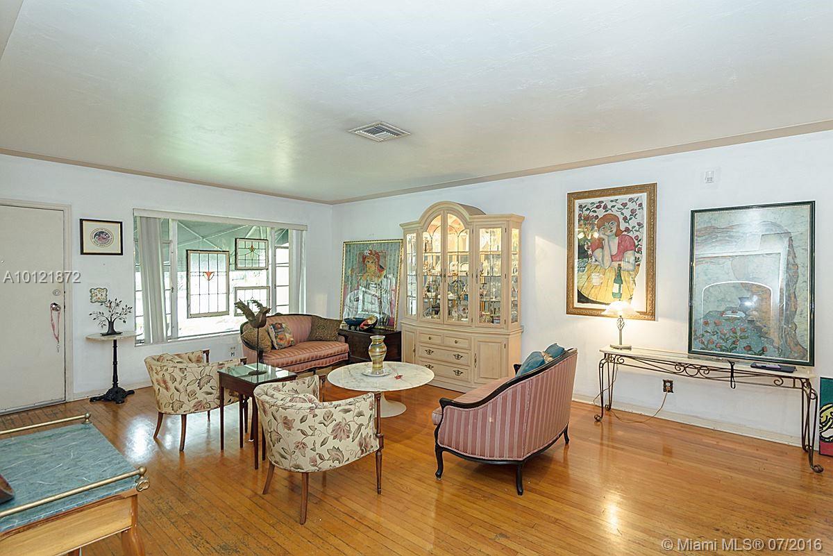 Miami Shores charm abounds in this lovely 3/2. Original hardwood floors throughout and terrazzo floors. Large bedrooms, master bed w/ walk-in closet & 1940s baths w/ architectural detail reminiscent of its era. Tons of closet space! Ideal location w/ private backyard & high-ceilinged screened patio w/ plenty of room for pool. Lovingly maintained w/ original charm. 1-car garage offers addl storage. Great possibilities!