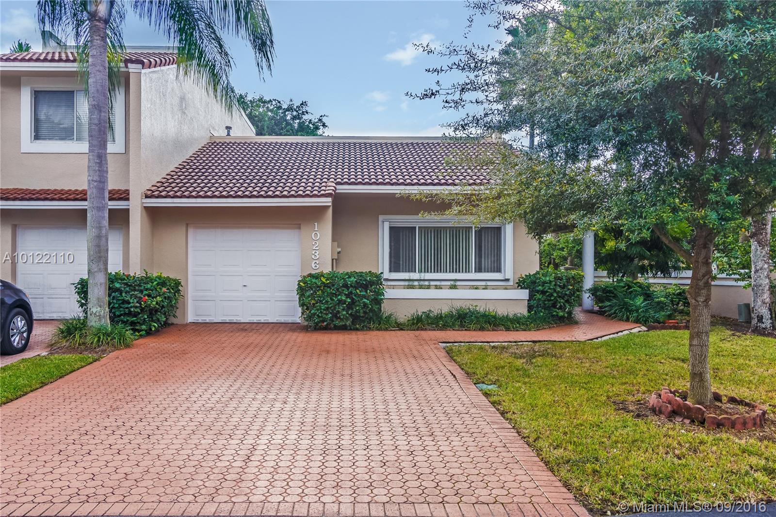 Beautiful & spacious corner 1-story Townhouse with lots of natural light throughout. Fully tiled, brand new stainless steel kitchen appliances and lovely white cabinetry kitchen. Large Master bedrooms with walk-in-closets and spacious Master Bath with soaking tub, bidet and separate shower stall. 3rd bedroom closed in for privacy. Great private courtyard with patio brick pavers perfect for entertaining. Centrally located in sought after Doral Park Country Club area. Great community with endless amenities.