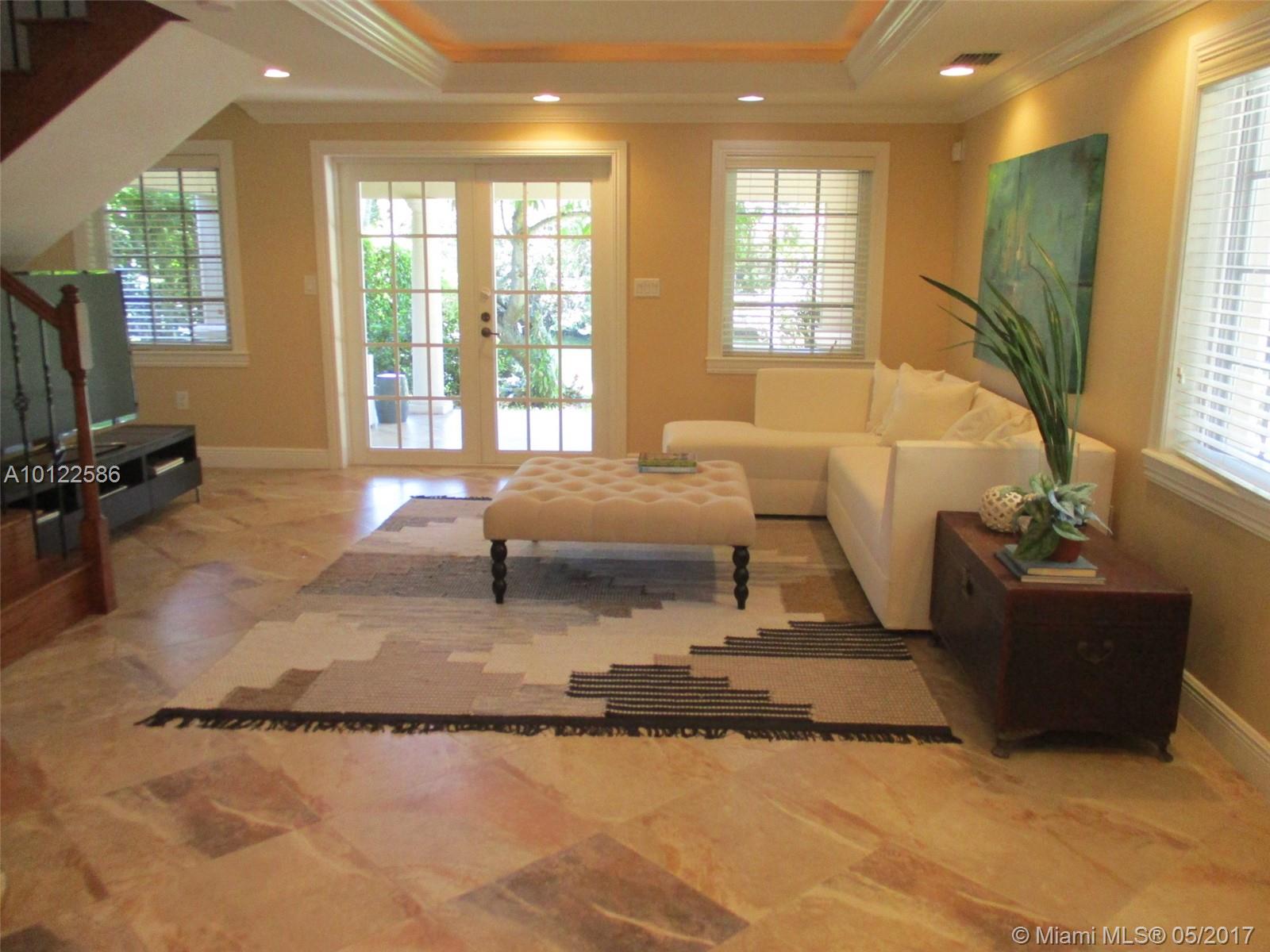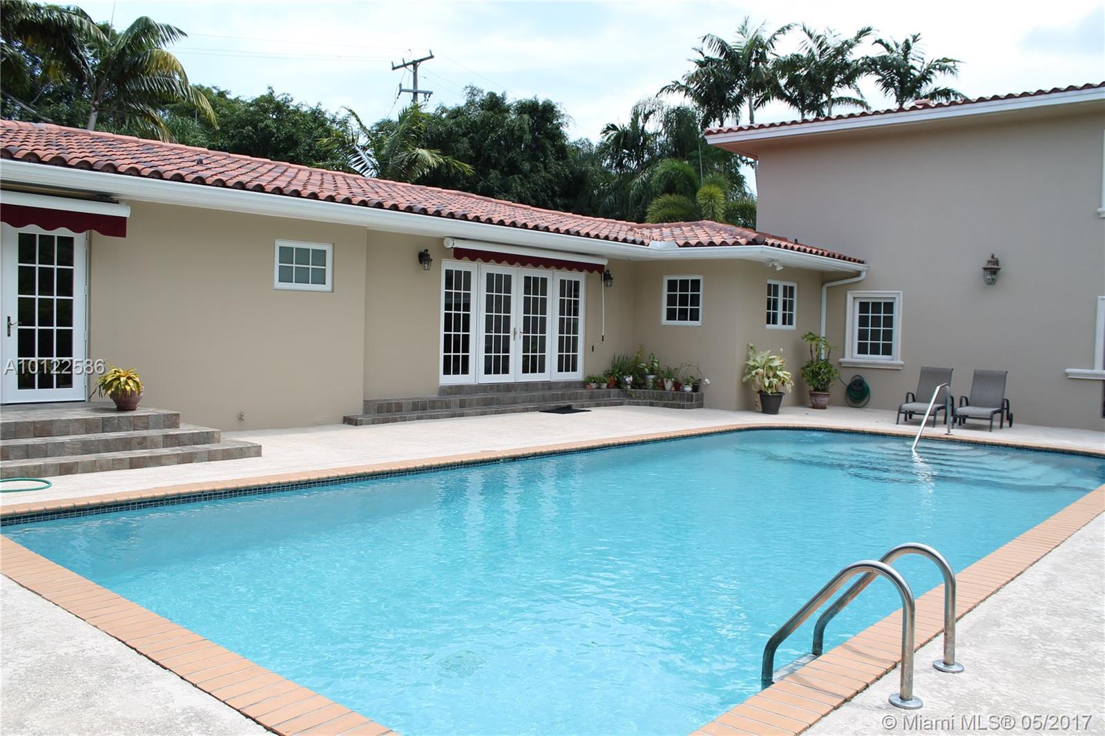 DRASTIC PRICE REDUCTION: Lowest price Gables waterfront property. Completely remodeled 4/4 on Coral Gables waterway w/direct access to Bay. Large master 2nd flr addition w/spacious bath; his/her granite vanities, bidet, shower, walk-in closet, private balcony overlooking the waterway. Below master is media rm, full bath. Covered outside patio. Orig. home consists of lovely formal liv/din rooms with hardwood floors,2nd master with ensuite bath, 2 add'l bedrooms, plus full bath, brand new eat-in kitchen, w/granite counter-tops and stainless appliances, & family room. New dock w/davits.