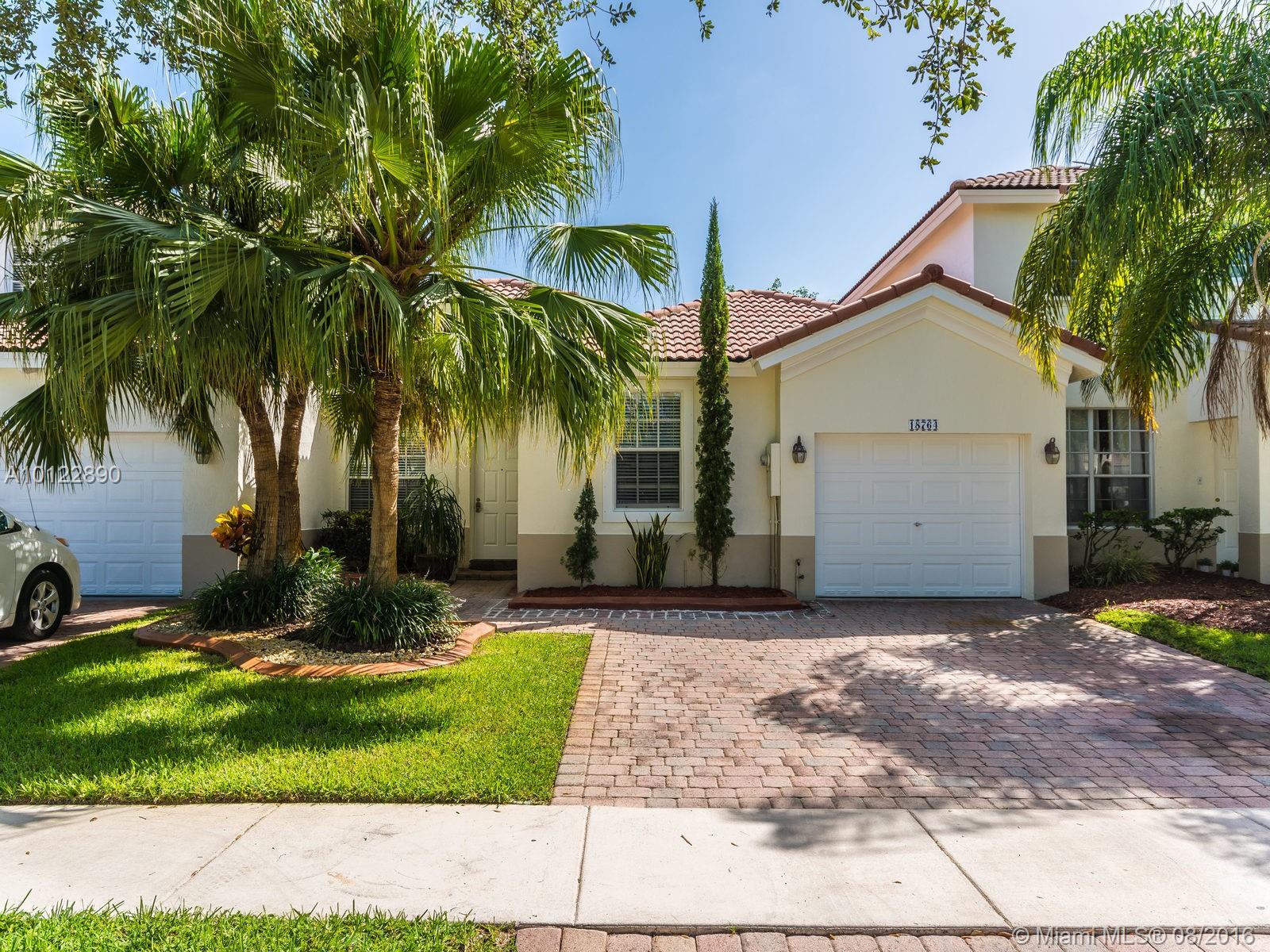 One story 3 bedrooms, 2 bathrooms villa/townhouse with 1 car garage, in the great community of Grand Key at Sunset Lakes. Tile and laminated wood floors. Newer A/C and water heater. Extended patio. Resort Style Club House with pool, tennis court, basketball court, gym and sauna. HOA includes alarm and basic cable.