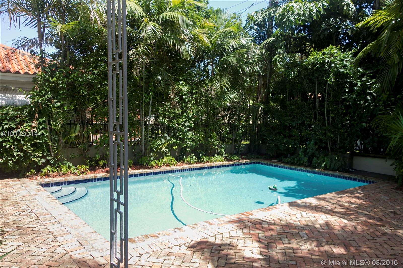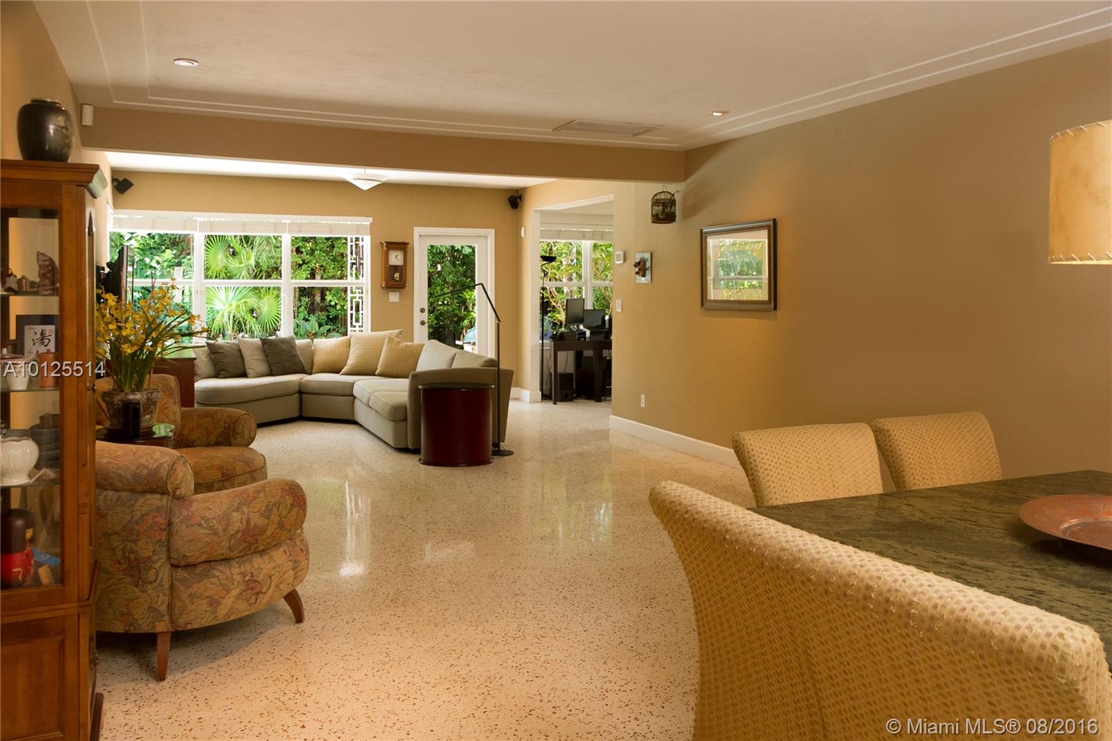 Charm & Modern Conveniences in quiet picturesque Gable neighborhood attractive landscaping w/Chicago Brick at front entrance & surrounding large backyard deck ,bright living room opens to inviting pool & entertaining private yard. Spacious kitchen w/window, updated appliances. 1 car garage w/storage. new Master bath. Impact glass, terrazzo floors termite guaranty Live the urban lifestyle walk to Restaurants, shopping book stores ,airport only 15 minutes. dining room table available for sale.