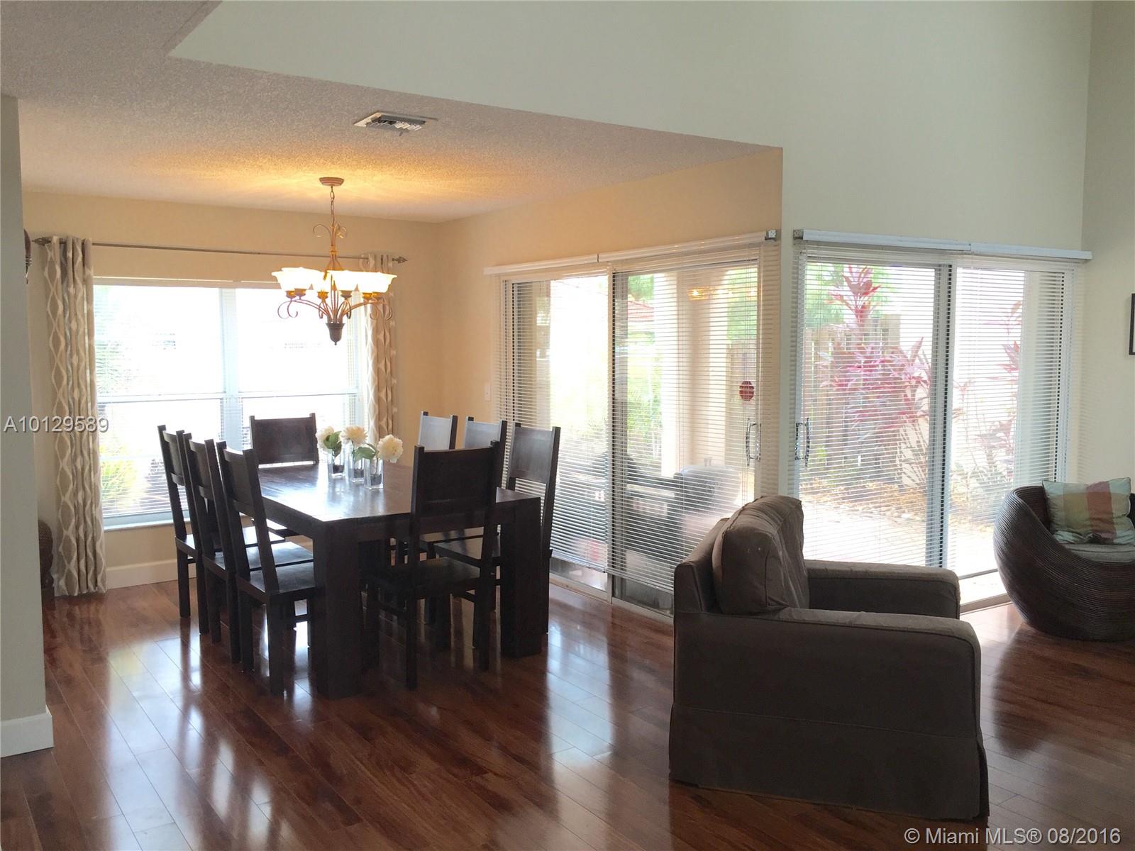 This beautifully renovated home in Doral Palms is a must see! Private patio/backyard has a larger lot than the average lot for the community,offering a great area for entertainment . True pride of ownership is evident throughout this two story home. This property features a renovated kitchen & bathrooms, laminate and porcelain floors and a Brazilian cherry wood staircase. Major ticket items have been replaced -Roof, A/C & garage door. As a resident you will enjoy all facilities at Doral Park Country Club!