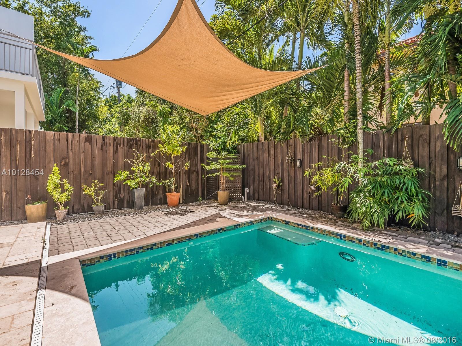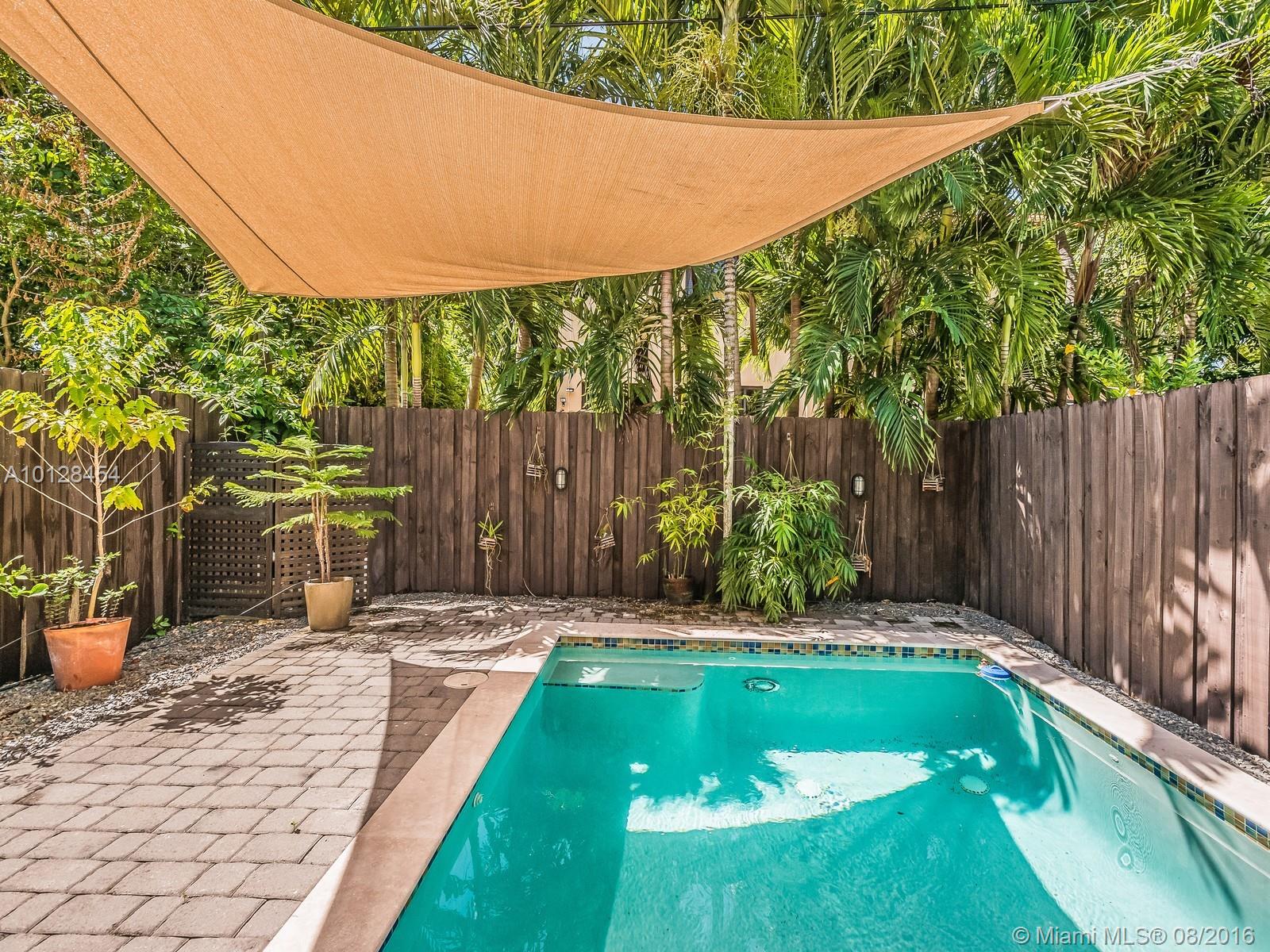 Live in the middle of Coral Gables and Coconut Grove on a quiet Lane within walking distance to catch the Gables trolley! Like brand new this townhouse has gleaming travertine marble floors, impact glass and a private dipping pool. Spacious floor plan with three bedrooms and laundry room upstairs. Totally gated with one car garage and plenty of parking for additional cars. Live in a townhouse just like living in a single family home! Central location to MIA Airport, Miracle Mile and downtown Miami!