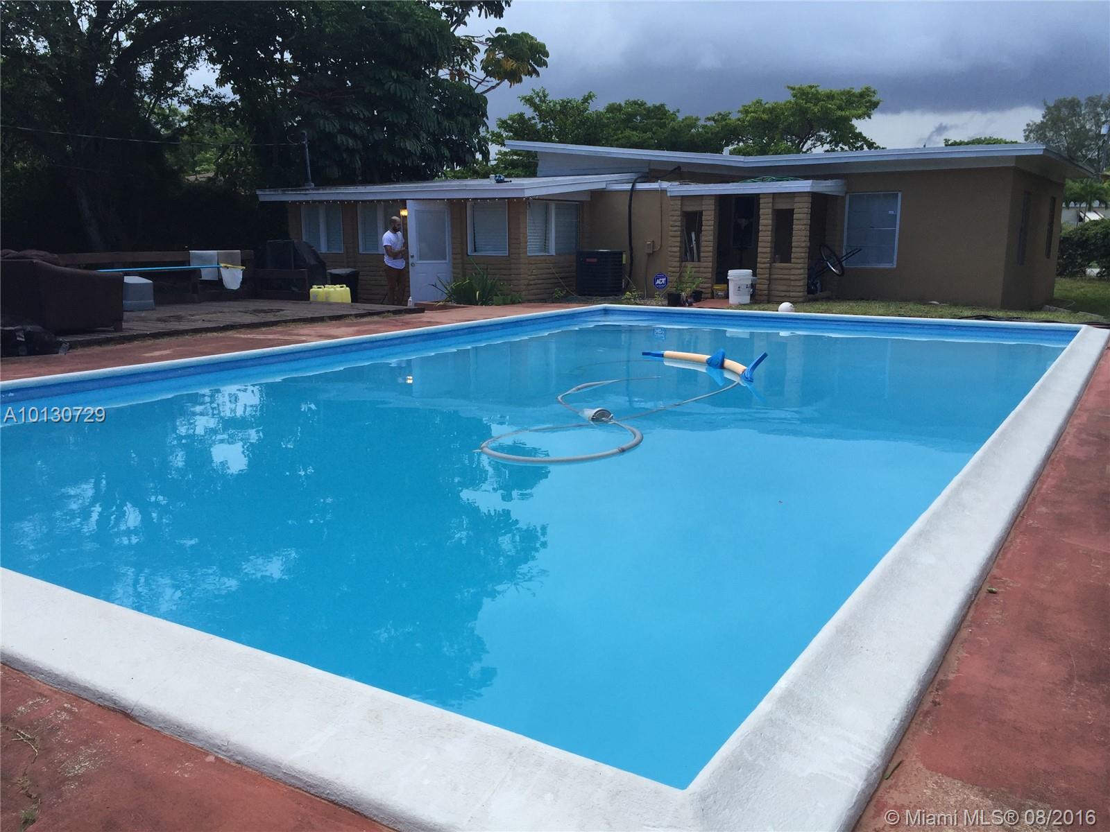 Beautiful one story house in big lot, with 2 bedroom and 1 bath, totally renovated, georgous swimming pool, new ceramic and wood floors, dining room, family room and Kitchen with new cabinets, big garden for enjoy with the family. Brand new inside and outside AC equipment with 10 years of warranty. Pentair vacuum cleaner robot for pool and new pump are included. Several fruit trees are planted on the back yard.