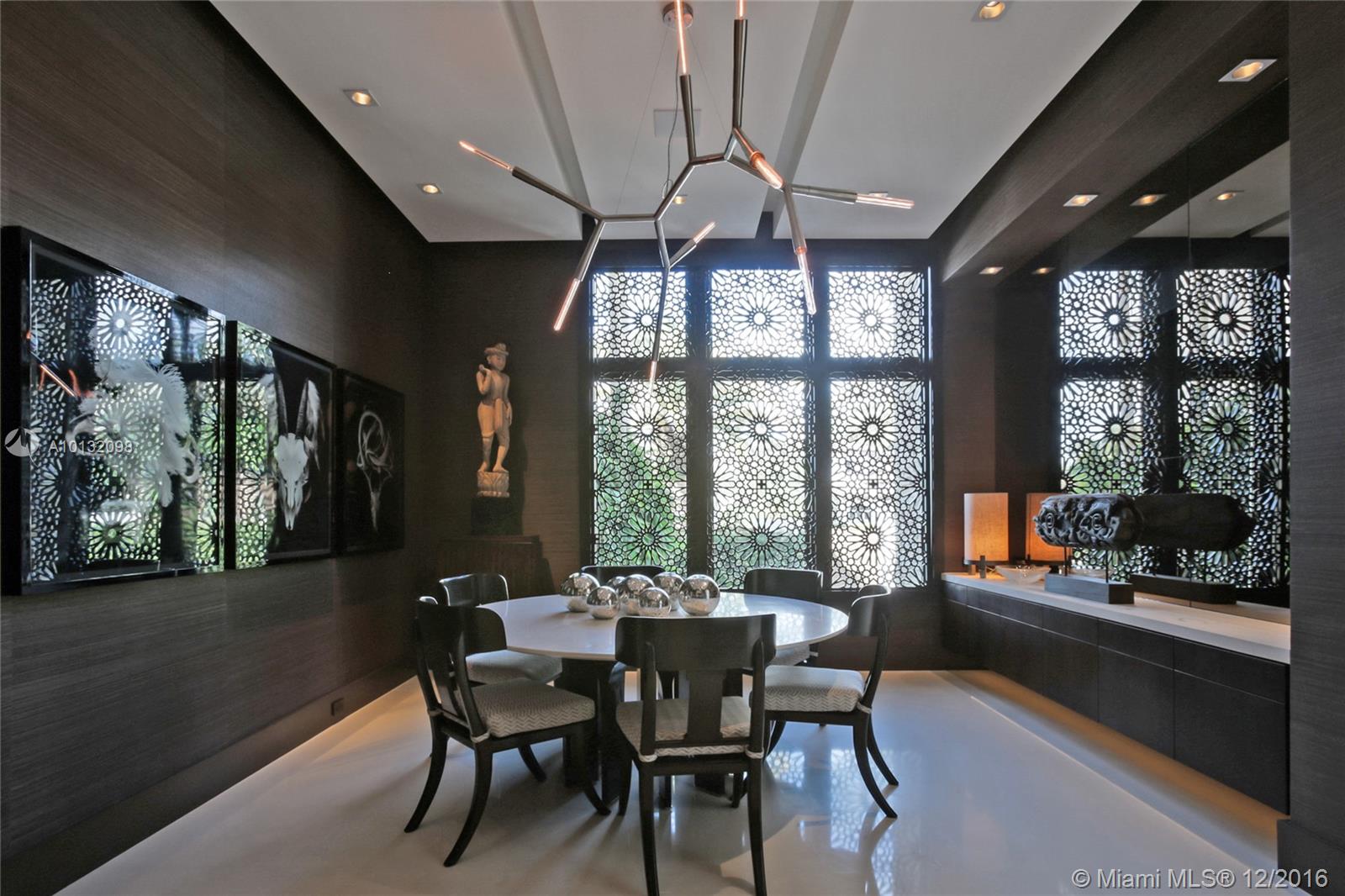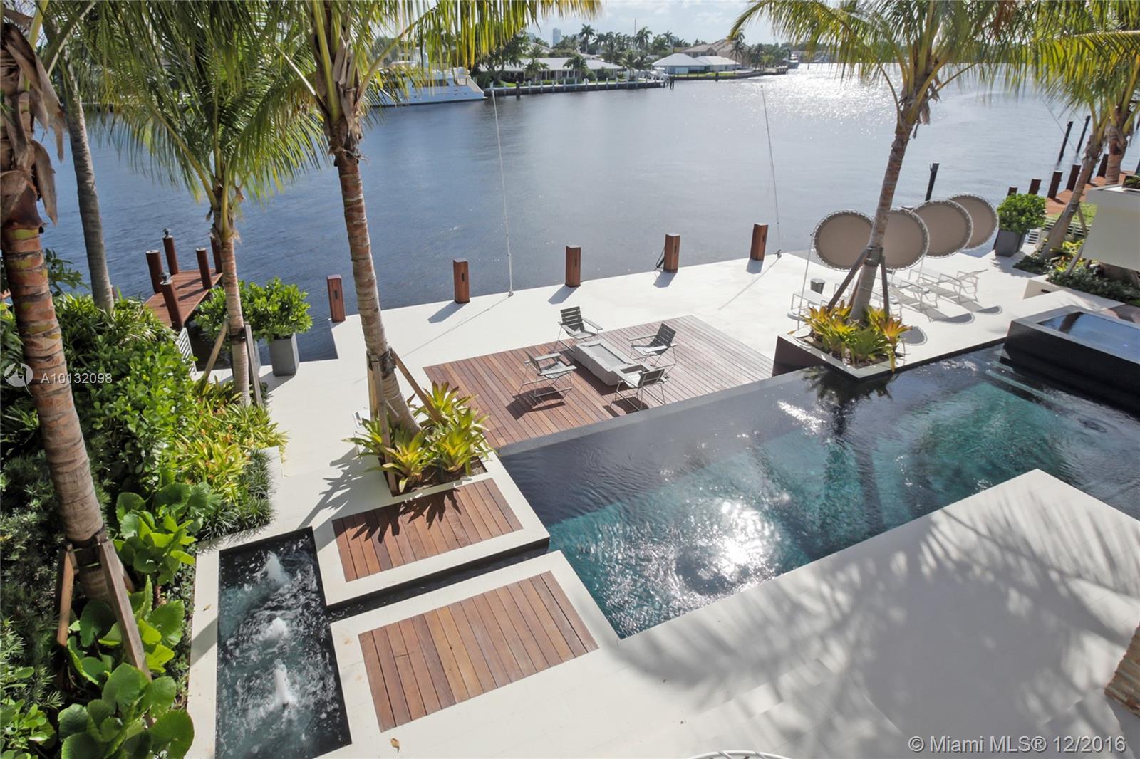 Unique, stunning, modern gated estate.Partially furnished. Turn-key.Built 2016.90ft water frontage with panoramic views and dock for up to 70ft boat. Infinity pool with attached spa.Designer chefs kitchen with walk-in cooler.Sub-Zero/Wolf appliances with wine storage. Five VIP suites with wet bar and balconies.Master his/hers bathrooms with spacious walk-in closets.Elevator.Separate office.Two attached garages with lifts (house up to 5 cars).Water filtration system throughout.Security cameras throughout.