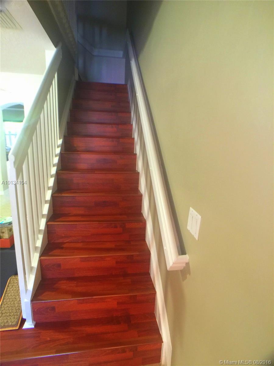 This beautiful 3/2.5 Fiji model features remodeled kitchen with new stainless steel appliances, granite countertops. Remodeled pantry with pull out shelves. Laundry room with cabinets and shelves. Plantation shutters in the 2 front windows. Accordion shutters in all the windows. Tiles on 1st floor, wood floors on the 2nd floor. New Rheem A/C. Custom made walk in closet in master bedroom. Beautiful clear shower doors in both bathrooms upstairs. Gated community conveniently located close to FLL airport.