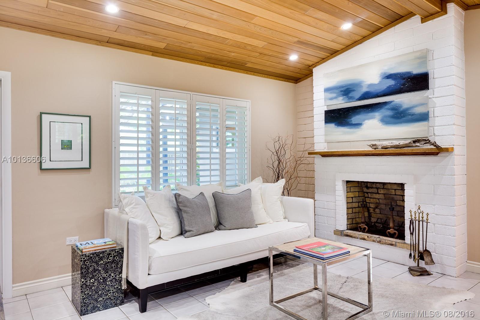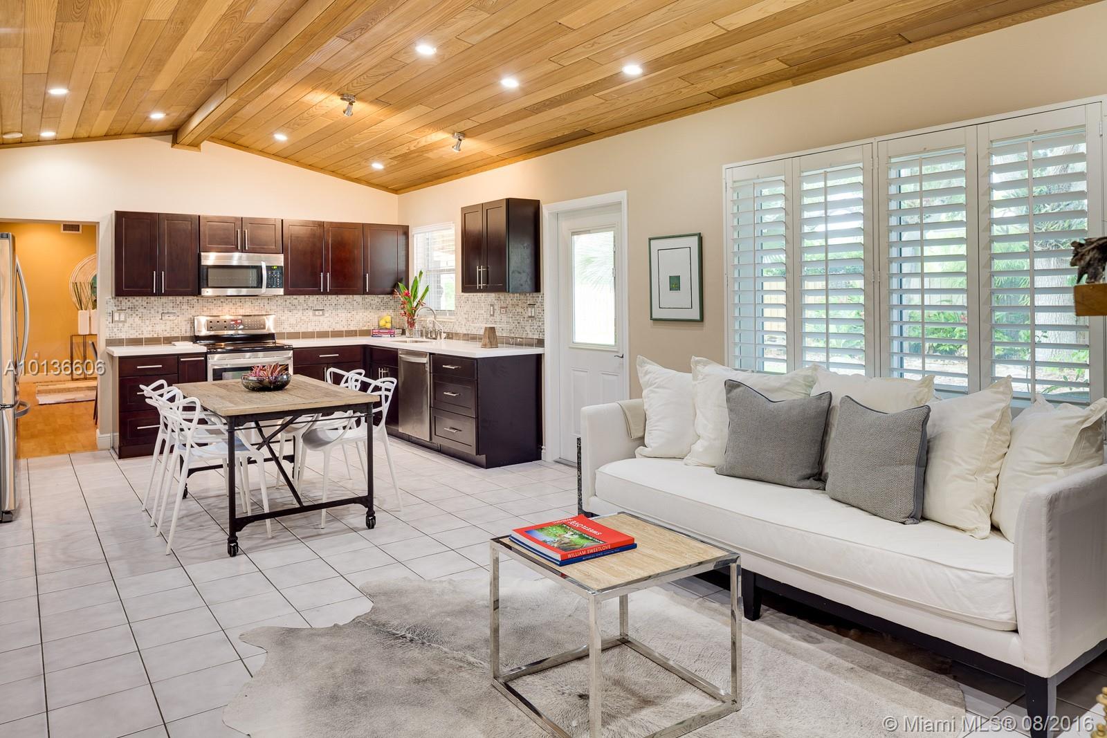 Welcome to Pinecrest comfort with Coconut Grove appeal. Come inside to find a tranquil home exuding warmth & style with a fresh, chic vibe. Vaulted wood ceilings, brick frplc & a brand new upscale kitchen set the tone for todays casual but stylish lifestyle. Sitting on a lush, gated, corner lot & surrounded by exotic foliage, highlighted w/landscape lighting, this home sparkles, day or night. Covered terraces & meditation areas add to the allure of this very special space to call home