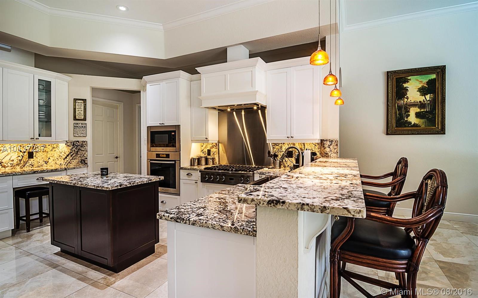 Custom Issa built home w/4 spacious bedrooms plus office & playroom. 3.5 FULLY REMODELED baths. Custom finishes, BRAND NEW MARBLE floors in main living areas.Open floor layout for entertaining w/Volume ceilings. New pool equipment, DIAMOND BRIGHT & A/C system. STATE OF THE ART KTICHEN with white Granite, 6 BURNER VIKING GAS STOVE, Stainless appliances w/WHITE shaker contemporary wood cabinets. Expanded master bedroom with tray ceiling, wood flooring and generous closet space. LED lighting, Smart house.