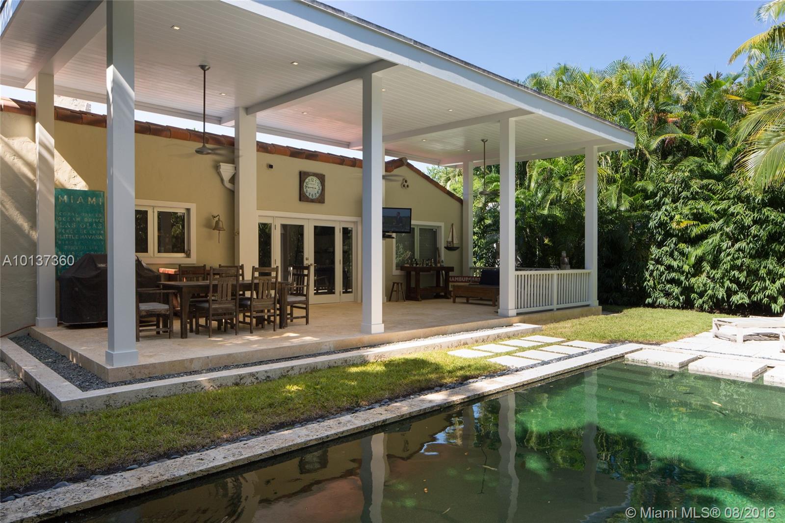 Don't miss this beautiful home in Coconut Grove! Tastefully updated with contemporary kitchen and bathroom, Sub-Zero refrigerator, gas range. Original wood floors and features. Built-in cabinetry. Impact windows and doors. Simply the best backyard in the neighborhood. Amazing 500sf covered veranda with 15ft ceiling leads to large, modern lagoon-style heated saltwater pool with Coralina surround. Must see!