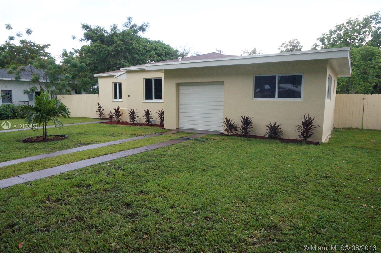 Gorgeous house with unlimited upgrades. This house has been completely renovated with new plumbing, new electrical, new floors, bathroom and kitchen and hurricane resistant windows. The house features a large 3/2 with an extra florida room and with a 1 car garage. The kitchen features a lovely open kitchen with plenty of natural light and space for a large family. Huge backyard with mango and tropical fruit trees. Easy to show.