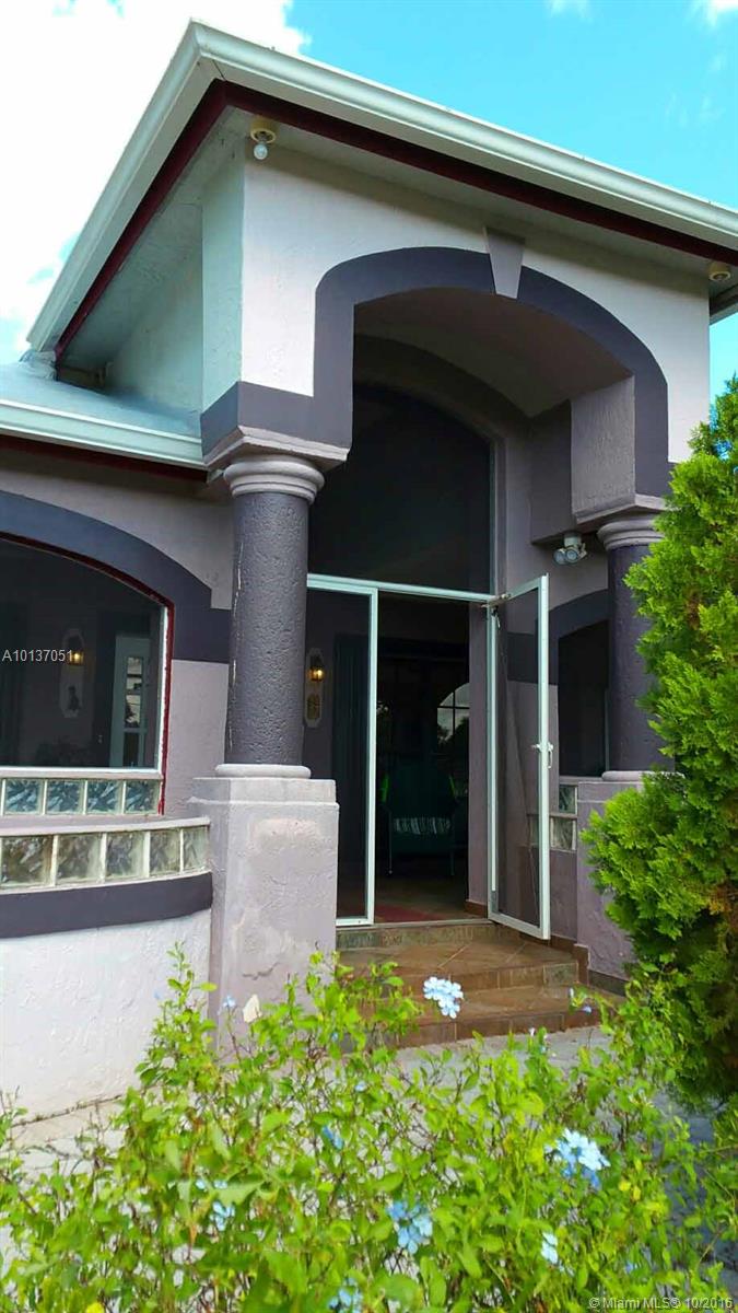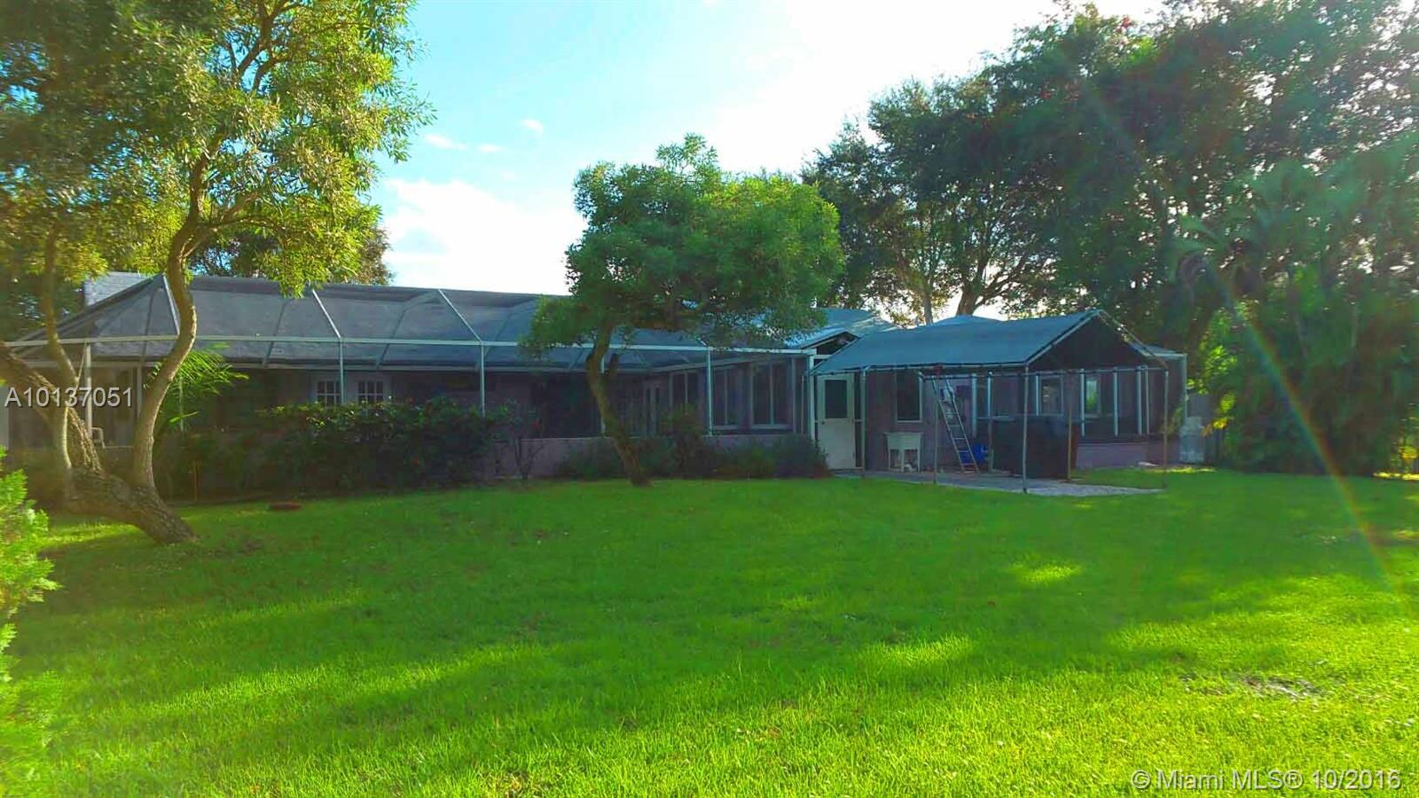 GORGEOUS ONE ACRE 4/2/1 home in a quiet private non gated only 7 homeowners community, formal dinning living room and kitchen. 2 car garage, tiled and closets area. Screened enclosed front porch. Attached gazebo &Terrace area with kitchen area and dining room. with impact windows and a beautiful wood ceiling. Unique shingle roof with urethane foam treatment on top. Screened pool and spa . Fenced patio area with mango and avocado trees, shed and covered area. Accordion hurricane shutters . Alarm.