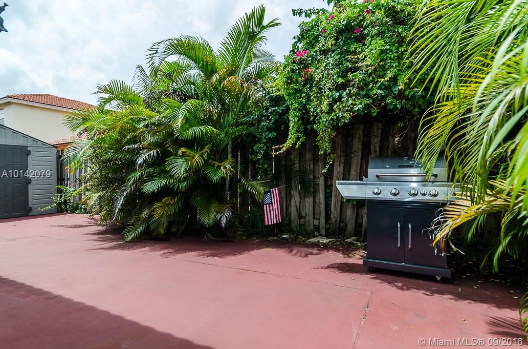 Beautiful Doral home in nice quiet "Doral Palms". split layout, large master bedroom, garage converted can be used as additional bedroom/playroom or office has full bathroom. Lots of closet space, washer/dryer, marble floors thought entire home. Community is part of "Doral Country Club" all amenities. Gazebo and shed stay. Home has accordion shutters on all window and doors.