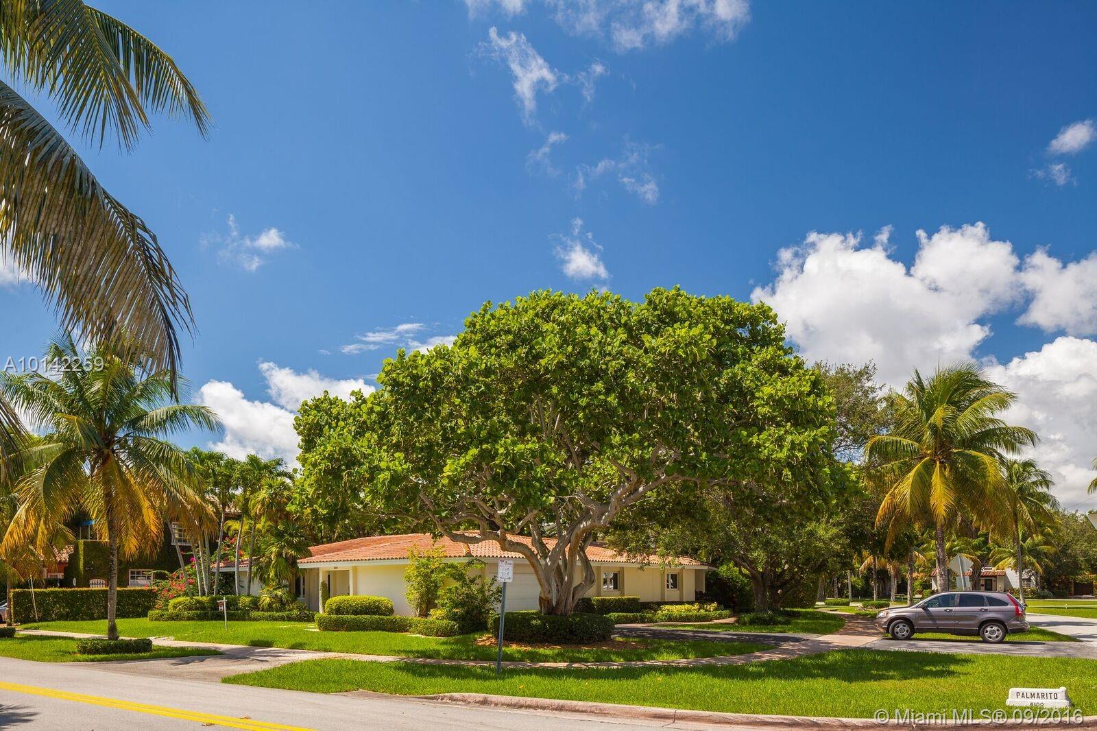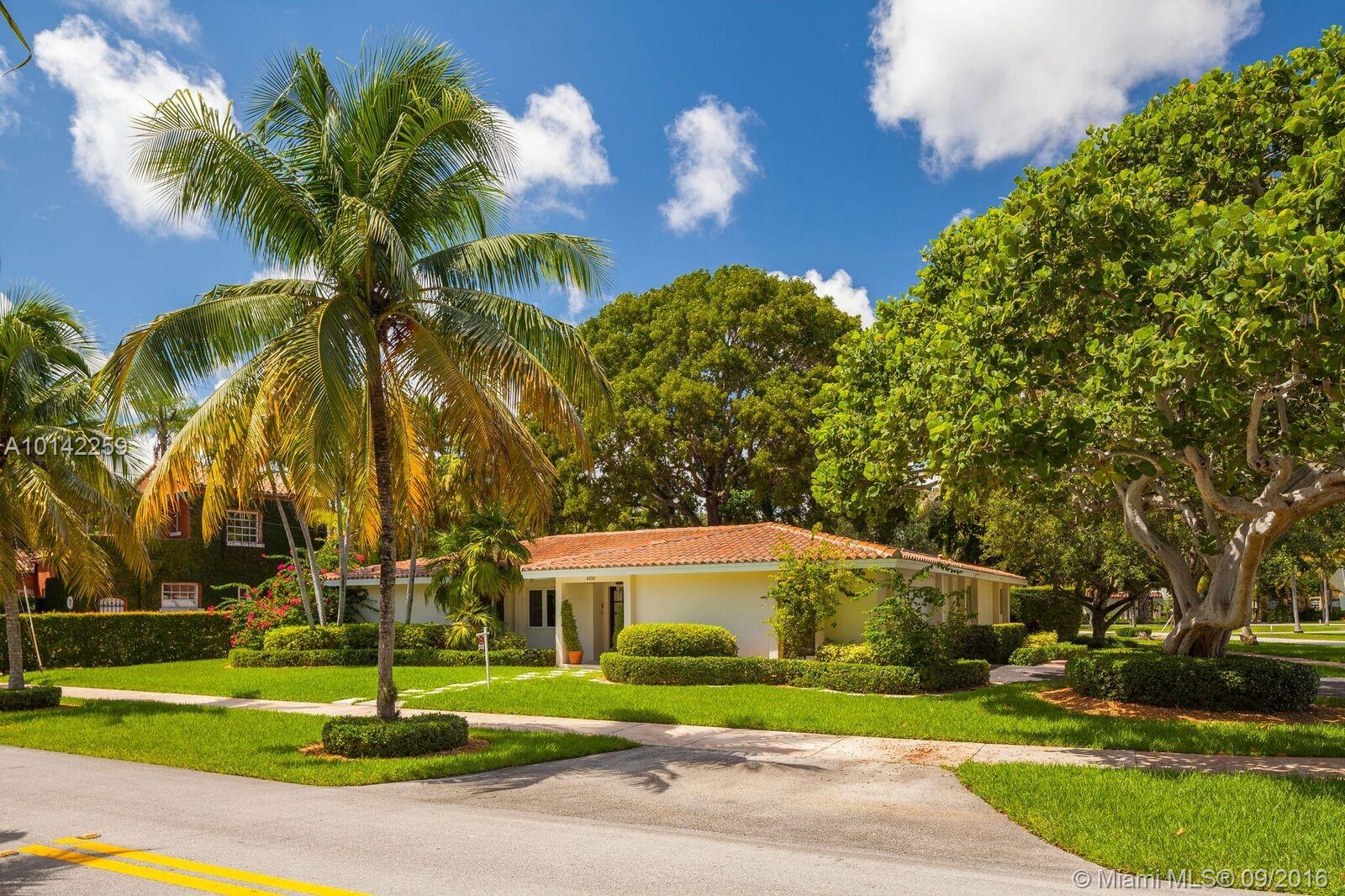 Situated on a large corner lot in the heart of Coral Gables, is a beautiful one-of-a-kind home featuring a spacious and bright living and dining room, open all-white kitchen, family room, and large master suite with French doors that open to the back patio and gardens. One of the best features of this home is a guesthouse with sitting area, kitchenette, 1BD/1BA, and private entrance. Perfect for guest in-law quarters, home office, or kids play area. In close proximity to shopping, schools, and airport.