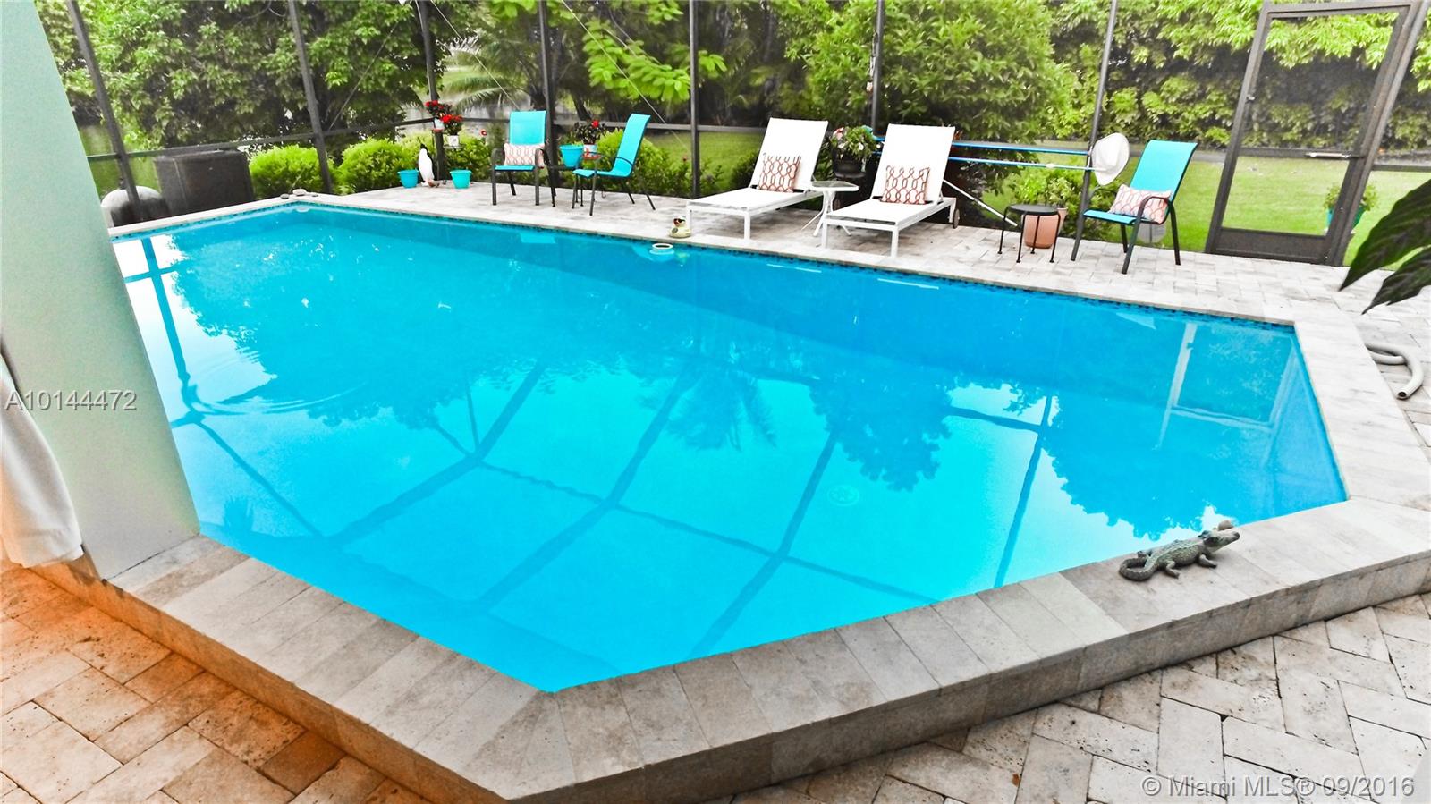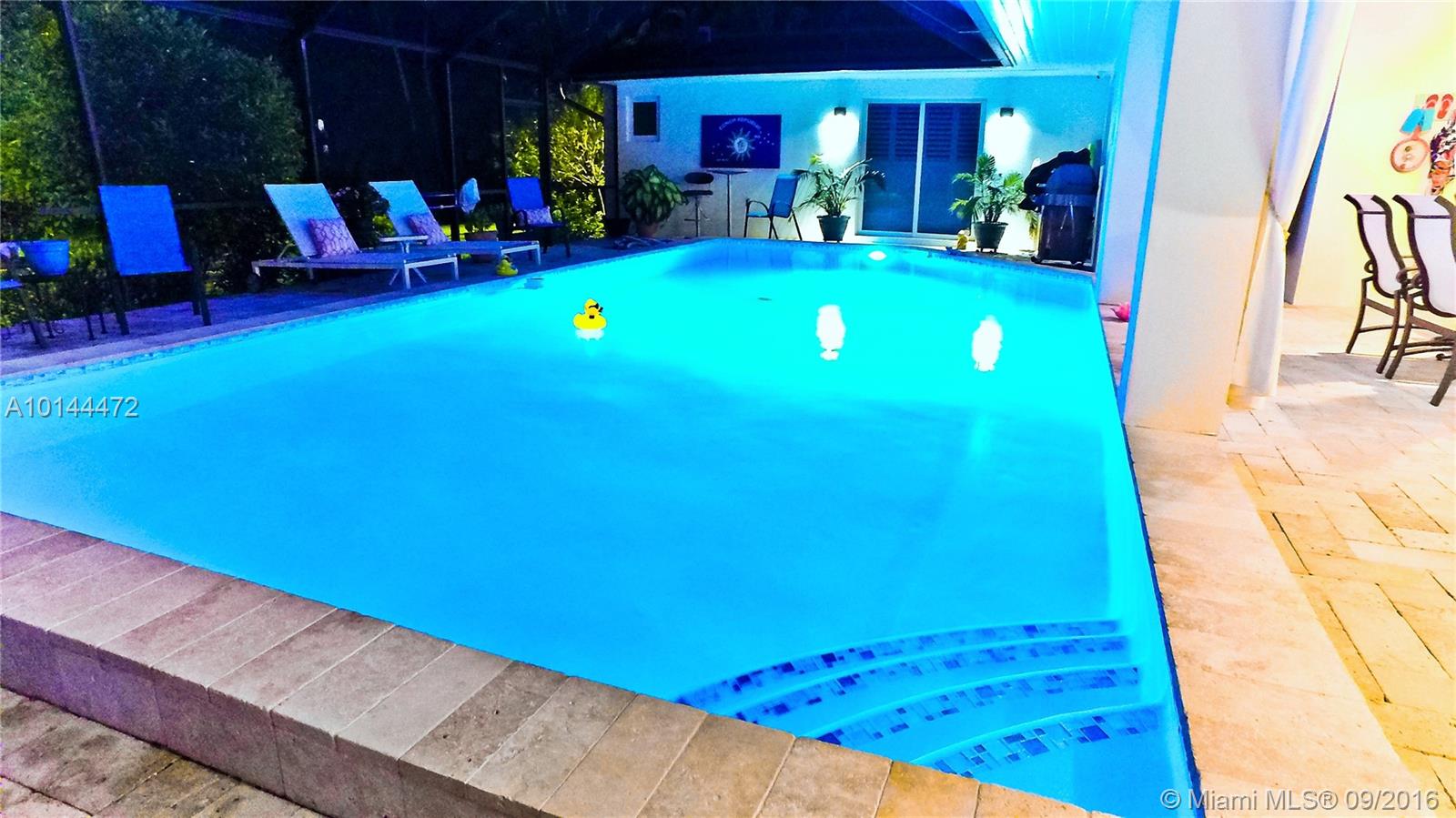 Totally remodeled, impeccably maintain, 4/3 waterfront home situated at the end of quiet cul-de-sac on 276 feet of canal frontage with dock. Gourmet kitchen w/stainless appliances, granite counters & custom cabinetry. Master suite w/huge closet & built ins. Den/library w/fireplace. Large 4 panel slider to screened, travertine patio & heated pool w/sea-glass surround. Double gated rear access to property for easy boat or RV storage. Best schools. Near churches, synagogues, shop & metro rail. Easy to see.