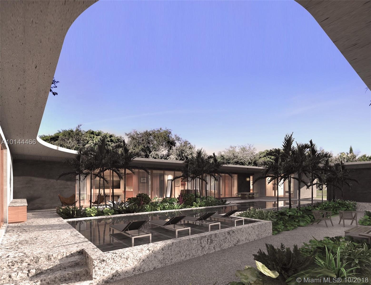 Modern tropical luxury home designed by award-winning Brillhart Architecture in the heart of Pinecrest, close to excellent schools. One story house, high ceilings with walls of glass allowing great views into a lush courtyard. Lap pool and custom sunning areas, outdoor kitchen and BBQ area allow for great entertaining. House is elevated aprox 3" off the ground. Flat, insulated concrete roof. High end finishes, Italian kitchen with top of the line appliances, wet bar, and intelligent home control system. Three car garage plus storage room.