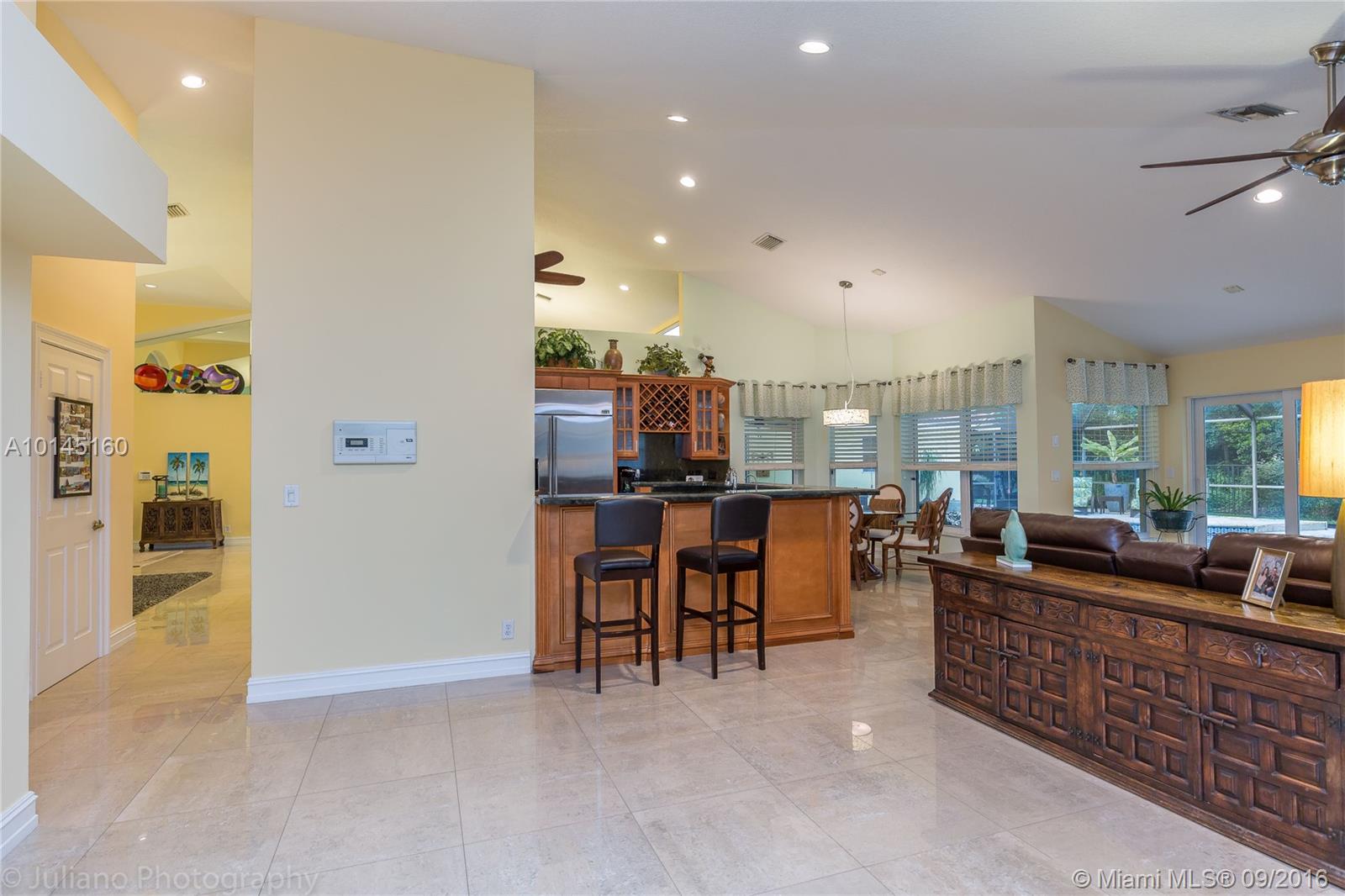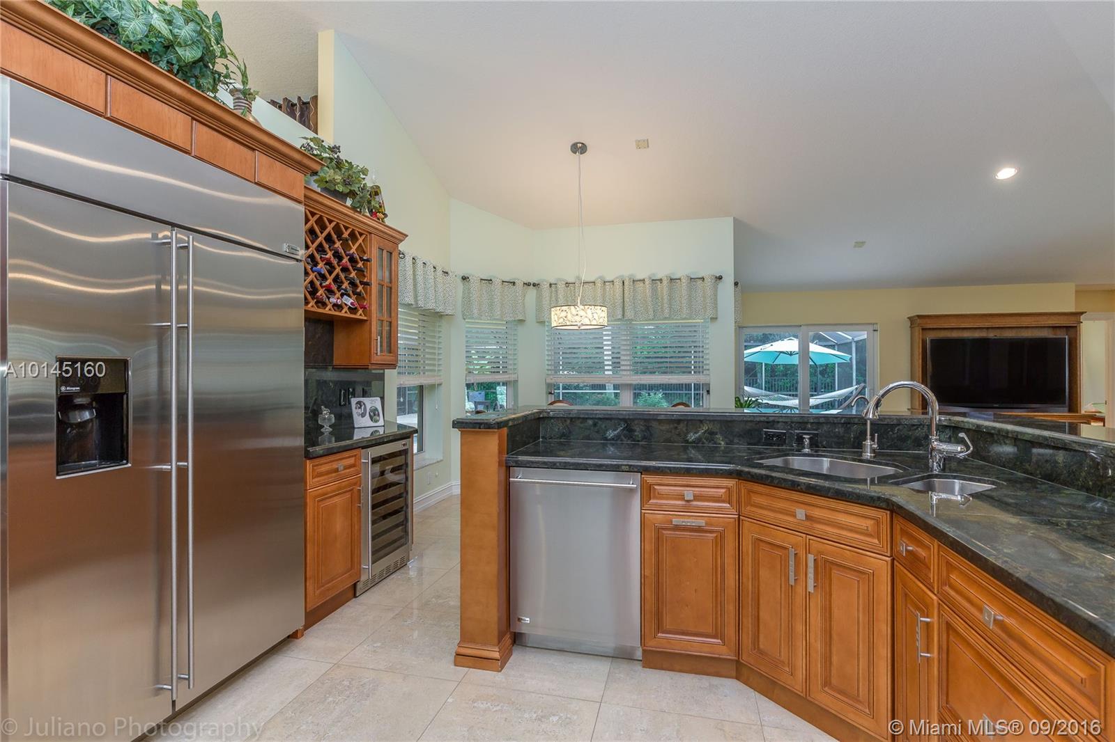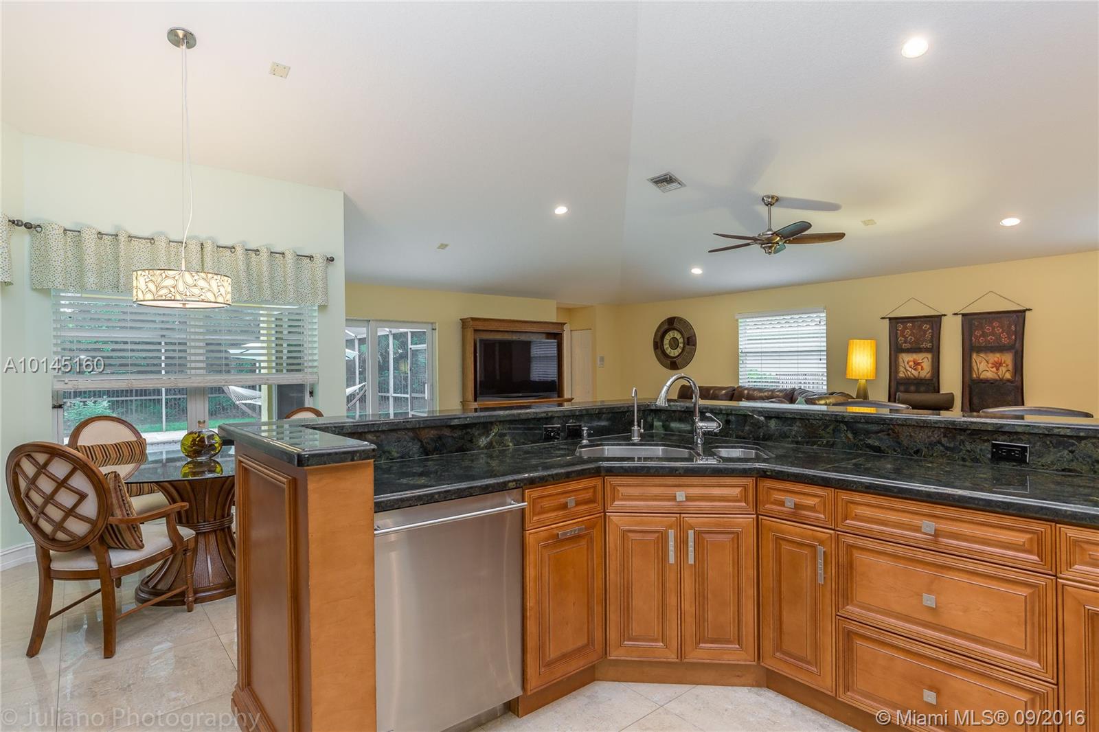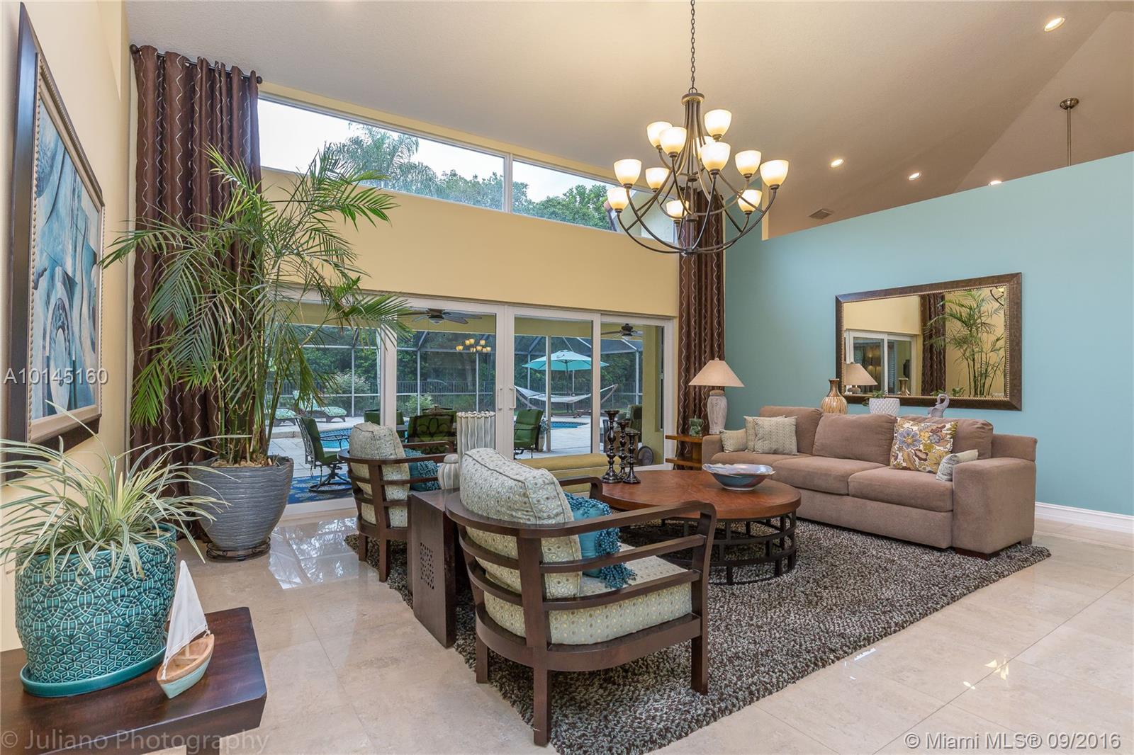 Gorgeous move in ready 4/3 pool home with over 3300 square feet of living area! Open and bright floor plan. ROOF is seven years old, Hurricane IMPACT windows, rectified porcelain tiles in main living area and bedrooms. Every bedroom size is larger than standard size with an extra large family room. Custom designed kitchen is updated with granite counters, stainless steel appliances and wine cooler. Updated bathrooms. House sits on private oversize lot of 14,768 sq. feet! Two recent A/C units. Must see!