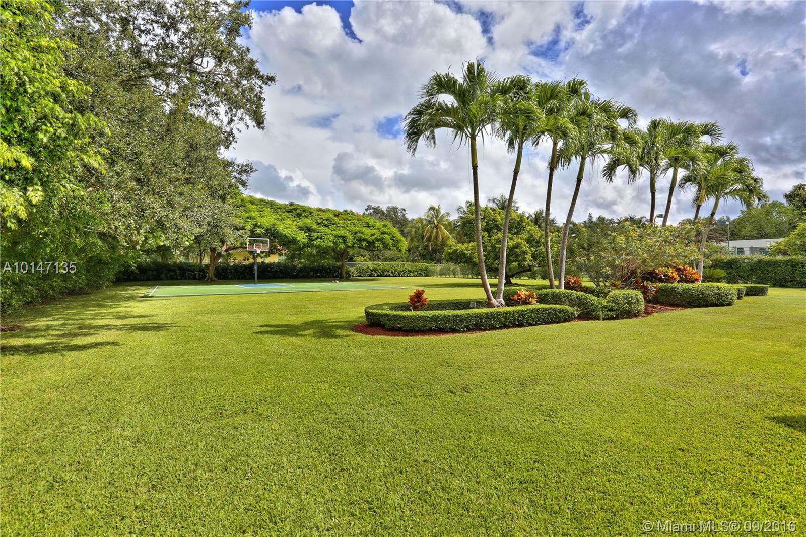 Any sports fans out there?! The perfect N. Pinecrest acre w/ 1/2 basketball court & all the room you could dream of for soccer or lax! Beautifully finished w/ vaulted ceilings, marble flrs, fireplace, & wonderful natural light. The frml liv & din rms create an elegant ambiance & open to a fam rm, 1 br & ba, breakfast area & gracious kit that overlooks pool & yard w/ 4 addt'l bdrms to the east including a spacious master suite w/ generous closets & lovely ba. 2 car gar, indoor lndry rm, & electric gates.