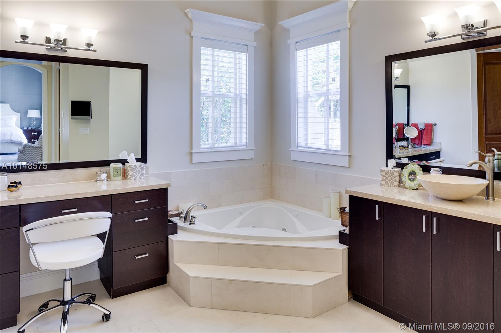 Coveted location next to Merrie Christmas Park in S. Coconut Grove is a stunning 5 bed/4 bath, magazine quality home on quiet tree lined street. Features limestone & Brazilian cherry wood floors, impact windows, 11' tray ceilings, custom cabinetry, & double crown moldings, gourmet kitchen w/professional quality appliances, heated pool and spa, laundry room, maid's quarters and garage. This spacious and sun filled home was designed w/family living & great entertaining in mind.