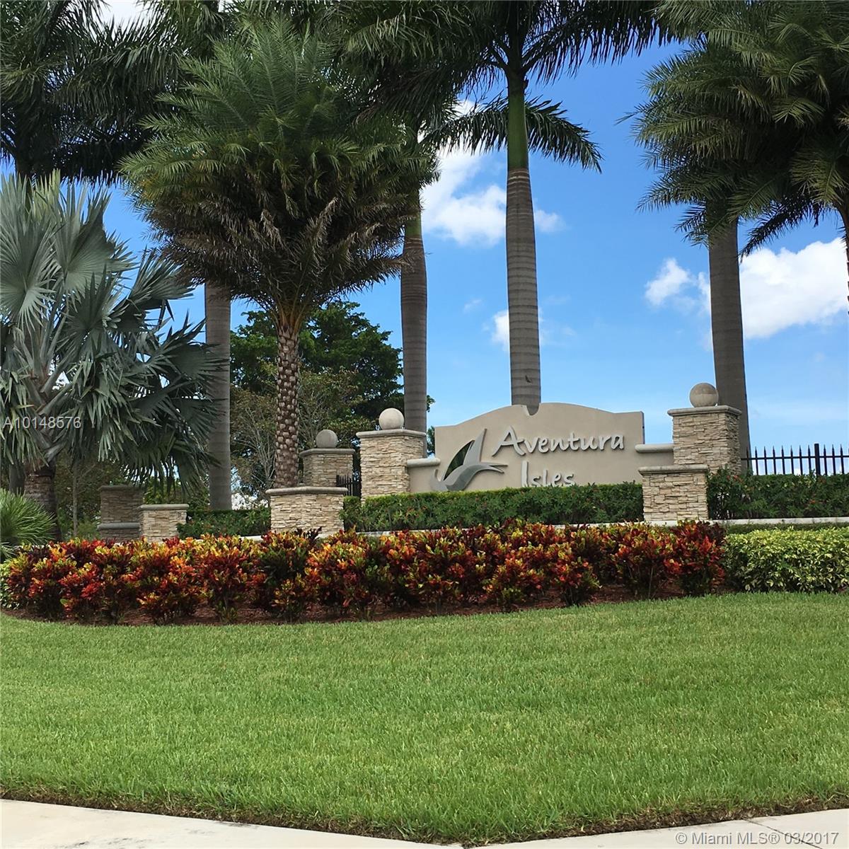 Newly constructed in 2013, this highly desired Sapphire model is ready for its new owner - YOU! Located in the beautiful Mediterranean inspired community of Adventura Isles, this 2-story home has been freshly painted & features white kitchen w/S/S appliances & granite counter tops. Wood floors through-out and open floor plan flows to open patio w/view of expansive green space. Pavered driveway/2 car garage. Grand gated entry & elegant common areas w/sidewalks through-out w/community pool/walking trails.