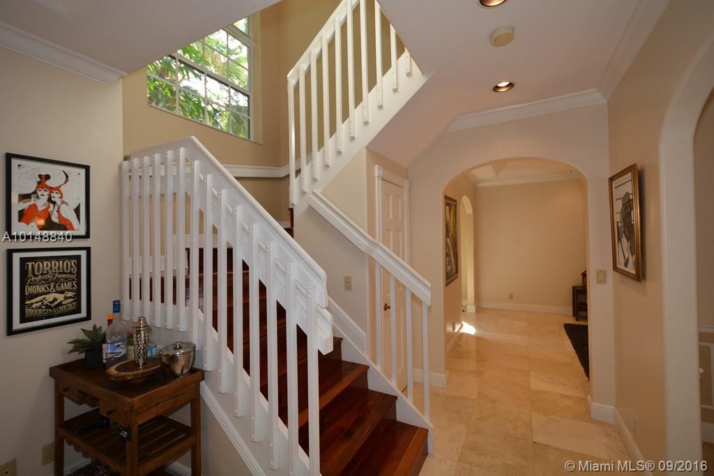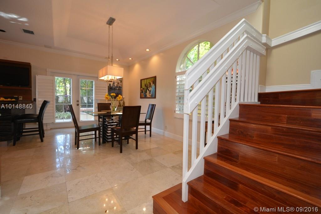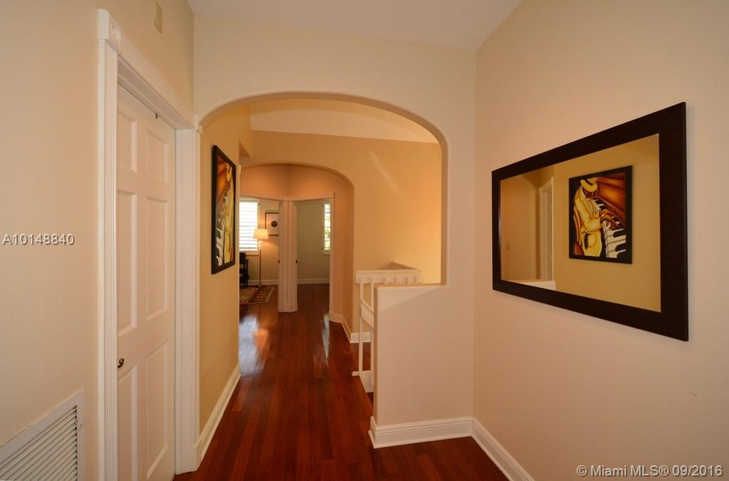 ONLY 24 TOWNHOMES ARE IN THIS "BOUTIQUE" LIKE GATED COMMUNITY WITH COMMUNITY POOL. THIS CORNER UNIT HAS 3 BEDROOMS PLUS A DEN AND IS UPGRADED WITH AN ULTRA MODERN KITCHEN WITH BOSCH S/S APPLIANCES AND A PULL OUT MICROWAVE & DOUBLE OVEN. TRAVERTINE NEWLY FINISHED FLOORS DOWNSTAIRS & GENUINE BEST QUALITY MAHOGANY STAIRS AND BEDROOM FLOORS. PRIVATE, LUSHLY LANDSCAPED, WALLED IN COURTYARD WITH BUILT IN SPA, ACCORDIAN HURRICANE SHUTTERS (THE LARGE ONE IS ELECTRIC) ARE MAINTAINED BY HOA,ALSO WATER TO SPRINKLERA