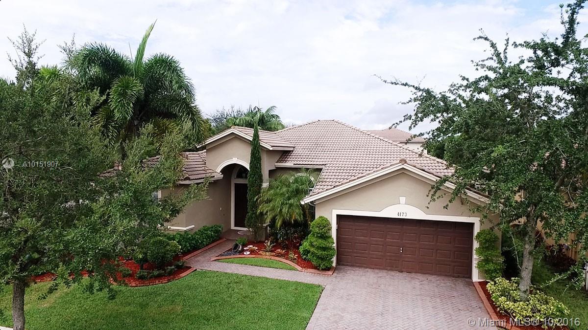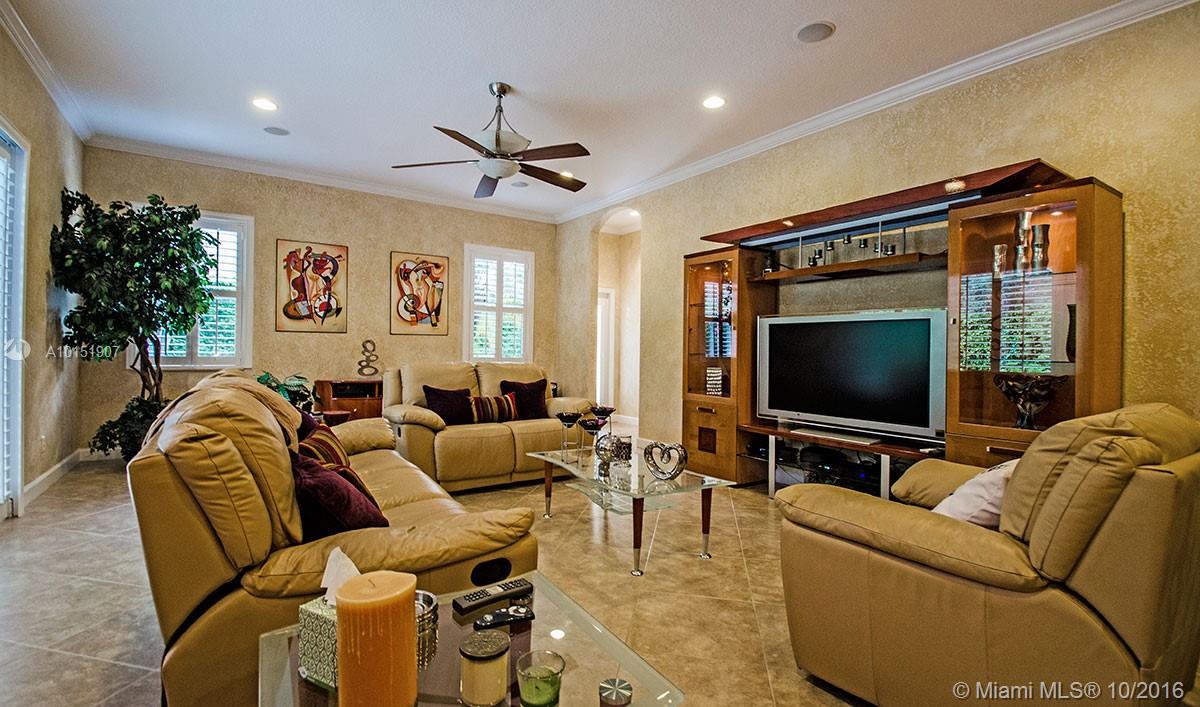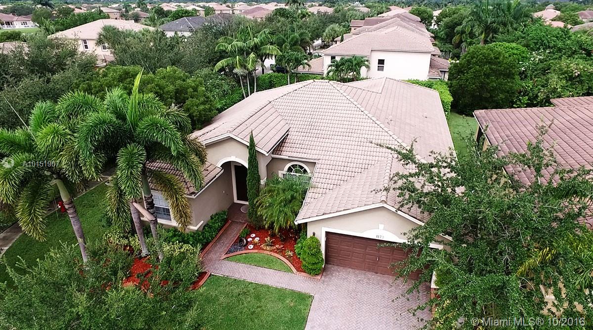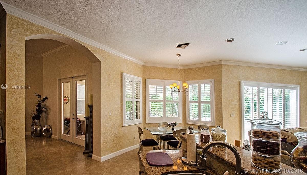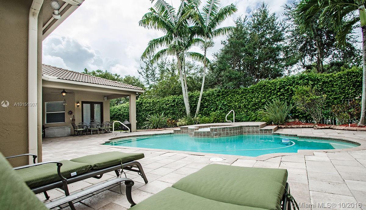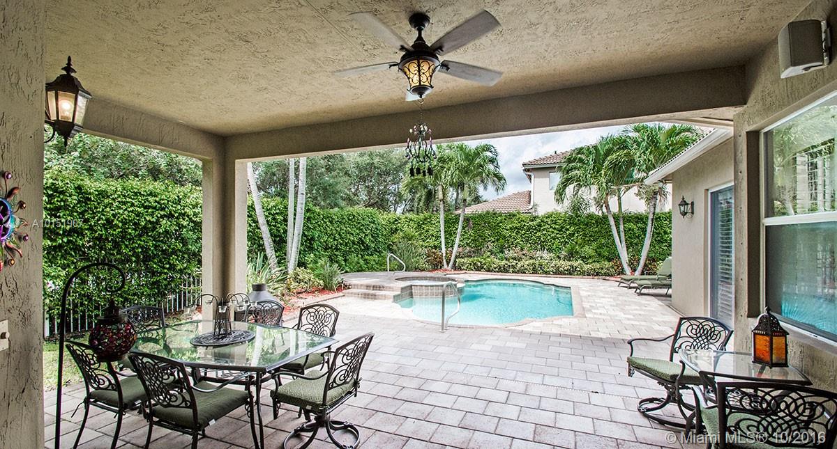 Amazing pool home on a corner lot offers lots of privacy and serene views, Great house for Outdoor entertaining. This triple split floor plan offers plantation shutters throughout, ceramic tile, Brazilian cherry wood floors in bedrooms. Upgraded Stainless steel appliance package and beautiful granite tops in kitchen and in butler pantry. Surround sound throughout magnificent light fixtures and custom decorative paint. House is freshly painted inside & out. Pavers are spotless and sealed.New AC A+Schools