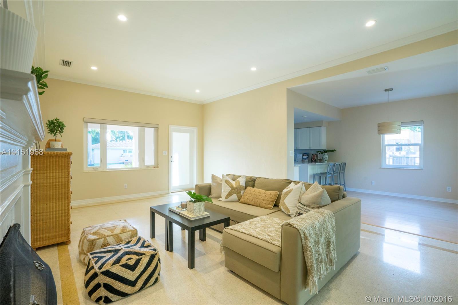 Mid-century gem located in the desirable gated North Bay Island community. Ready to move in! Featuring 3B/2BA, impact windows/doors, renovated kitchen w/gas stove, original terrazzo floor in main area & wood floor in the bedrooms, separate tub, new shower w/ double sinks in master bath, new fenced backyard, & 1 car garage w/ impact garage door.