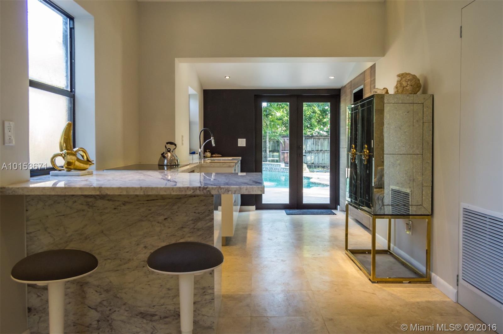 Trendy 3-bedroom, 2-bath pool home nestled near the hammocks of Greynold's Park in North Miami Beach is completely updated: Natural Travertine tile floors, Italian Carrera marble countertops, Bosch washer/dryer and dishwasher,Jenn-air smart double convection oven,Induction cooktop, fully integrated incognito French style Fridge, LED Lighting in home and garden, New Central A/C System/Ductwork, Tankless water heater, Sprinkler system, Storage Shed, HUGE private backyard with free-form pool, mature trees.