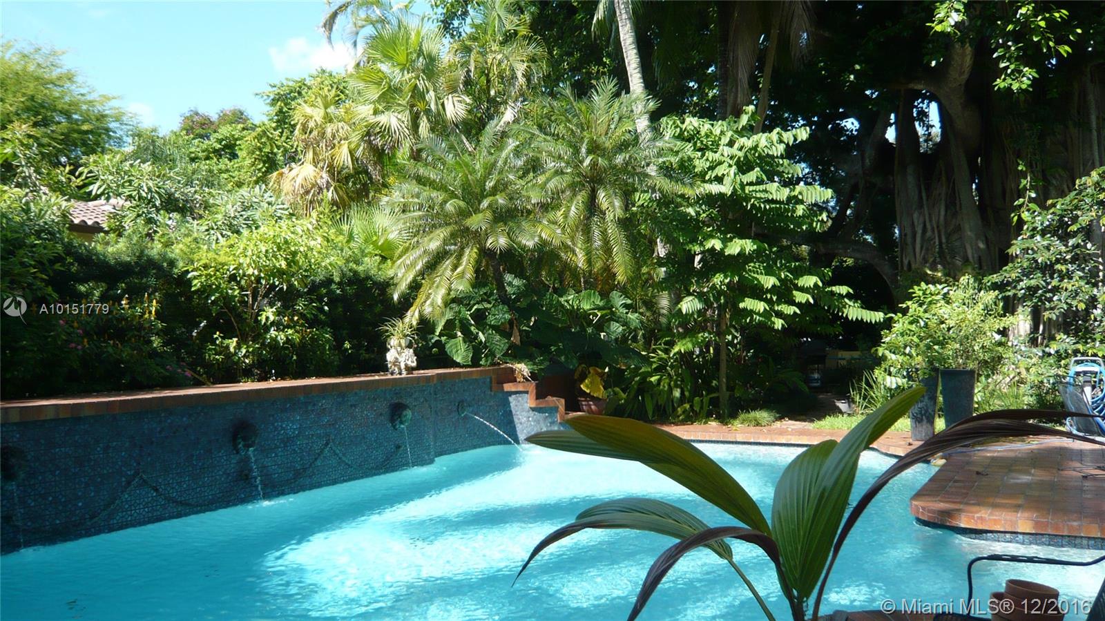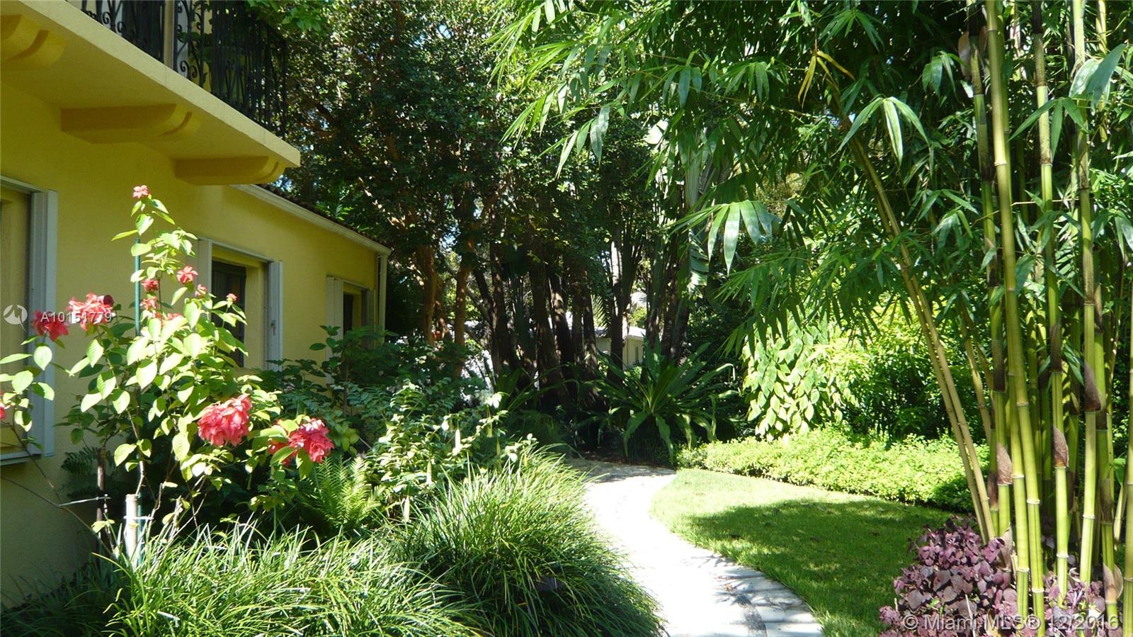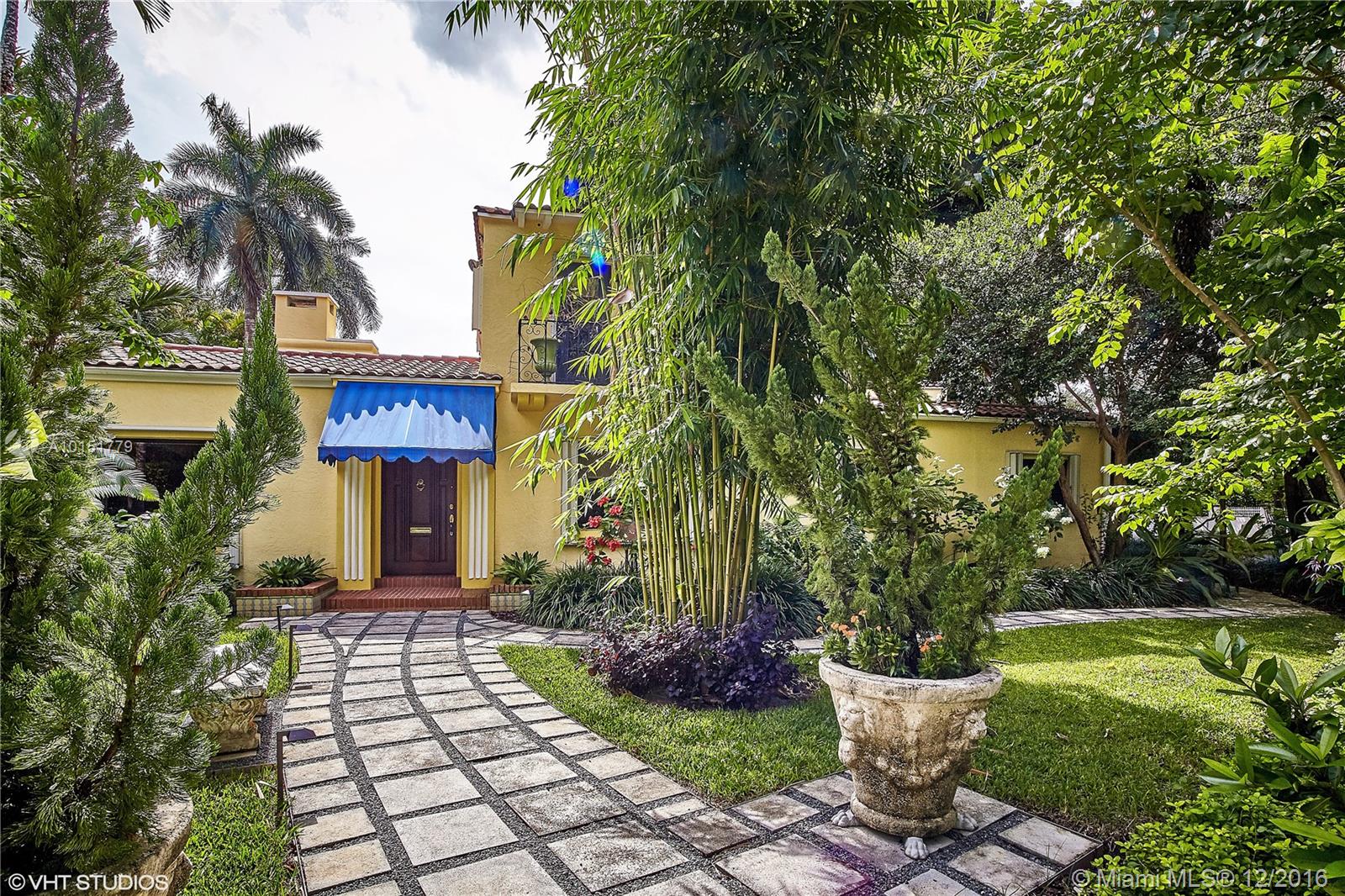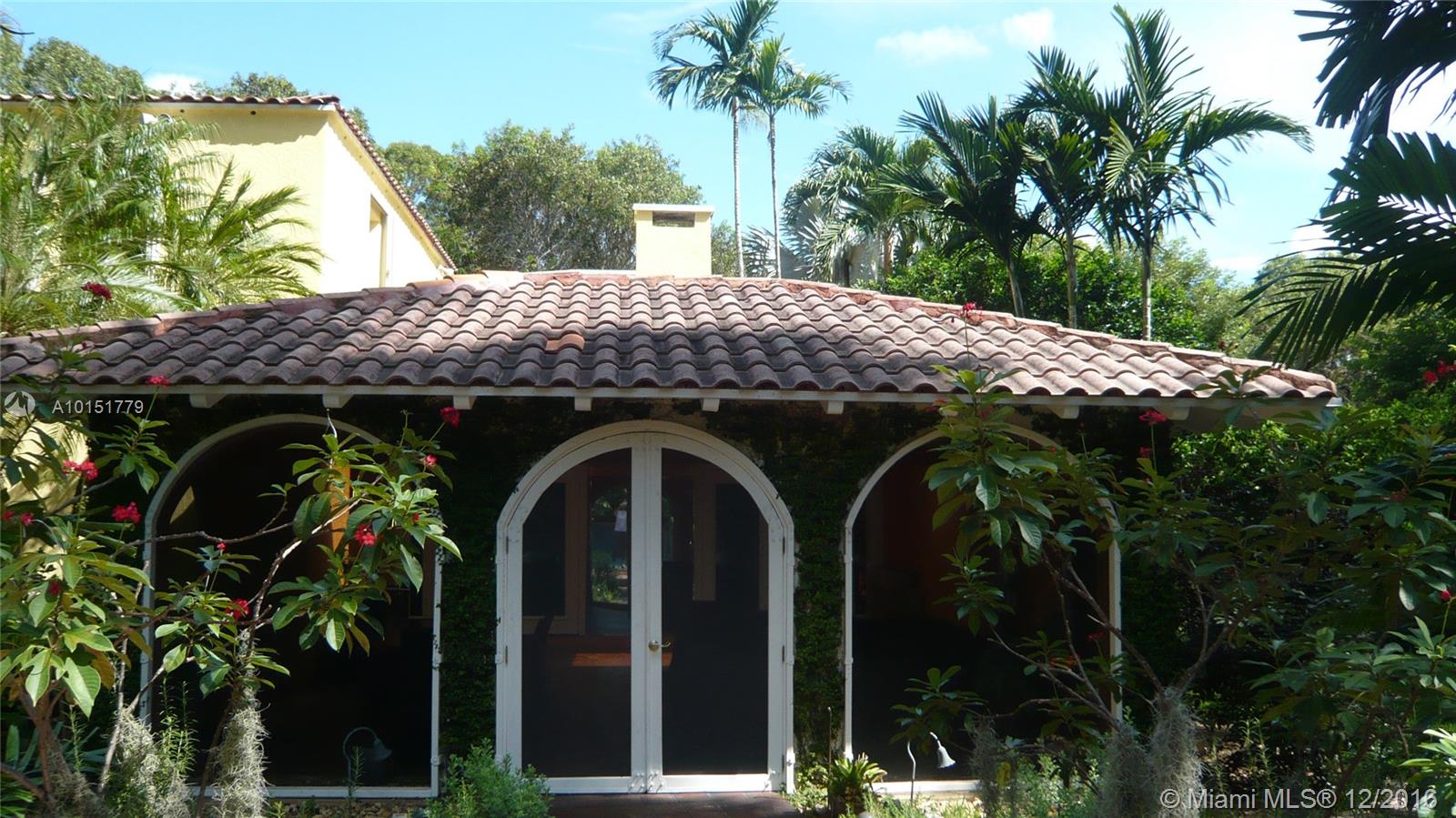 The gated entrances and lush gardens of this Old Spanish villa recall an era of charm and elegance. The cathedral beamed ceiling and massive fireplace in the formal living room imbue the home with the drama of historic Coral Gables. The fabulous landscaping of this large property affords maximum privacy while enjoying the patio and a pool for the serious swimmer. A guest house and screened room perfect for dining and entertaining complement this graceful home in the Golden Triangle.
