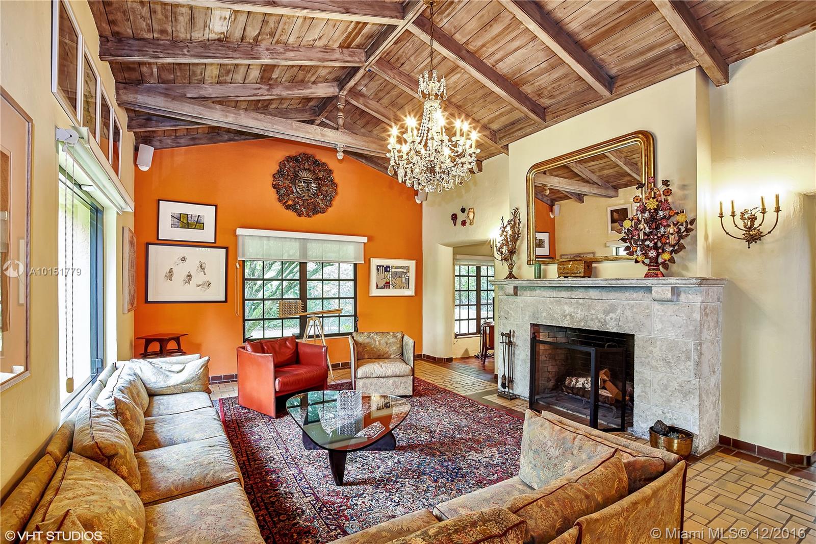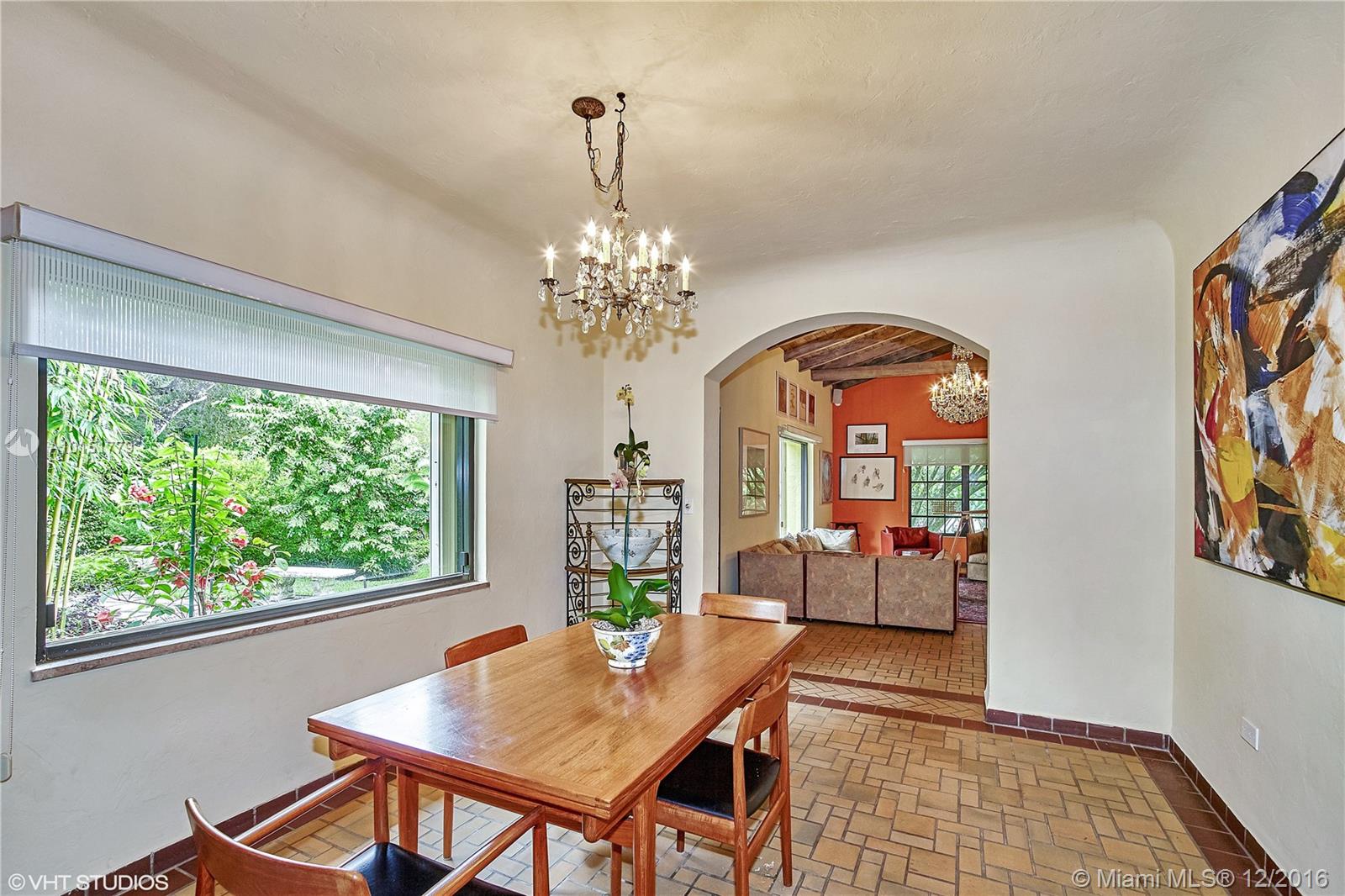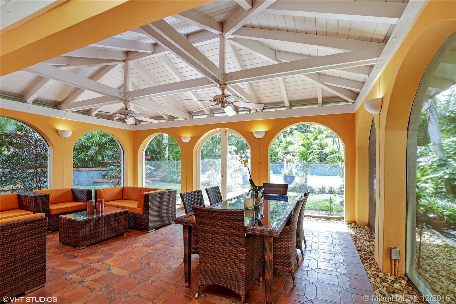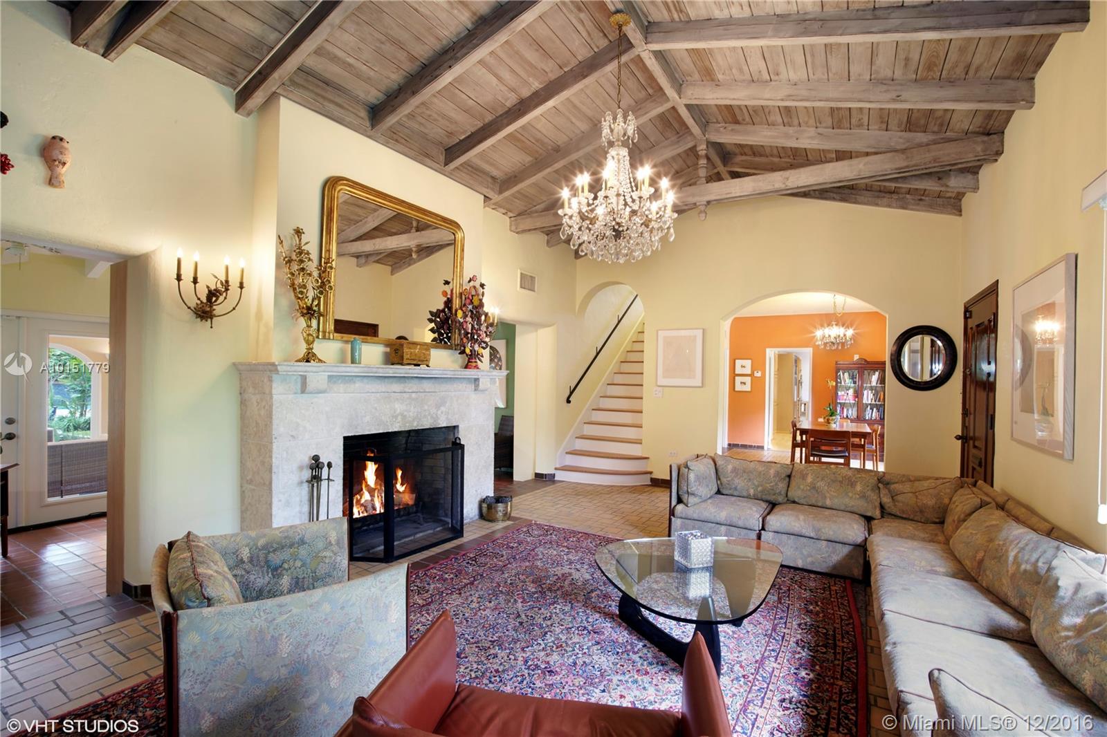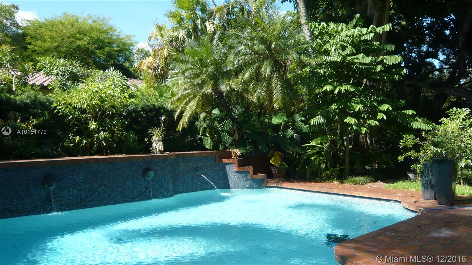 The gated entrances and lush gardens of this Old Spanish villa recall an era of charm and elegance. The cathedral beamed ceiling and massive fireplace in the formal living room imbue the home with the drama of historic Coral Gables. The fabulous landscaping of this large property affords maximum privacy while enjoying the patio and a pool for the serious swimmer. A guest house and screened room perfect for dining and entertaining complement this graceful home in the Golden Triangle.