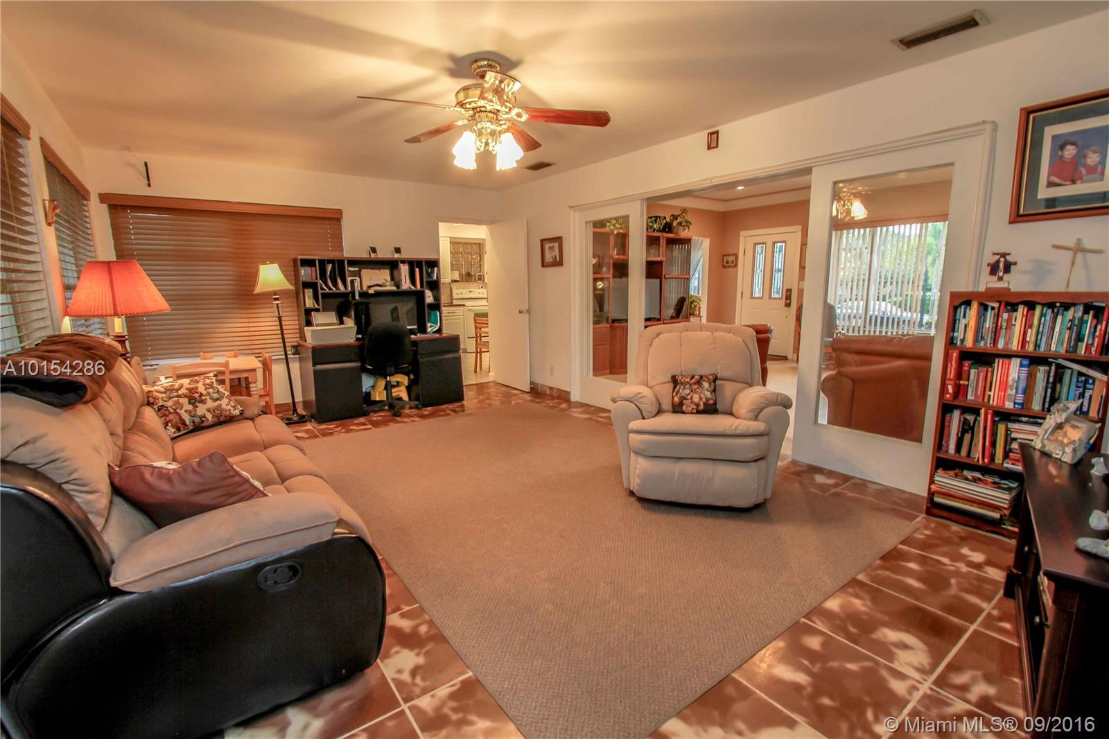 Corner property 3 BR, 3 BA, Bonus room currently used as a gym, laundry room +2 car garage. Open Terrace faces Pool. Double lot. Over sized Eat-in kitchen, granite countertops & White cabinets opens into formal dining room. Large living room. Family room w/Cuban Tile. Terrazzo floors. Spacious bedrooms Walking distance to the beach and downtown Hollywood.