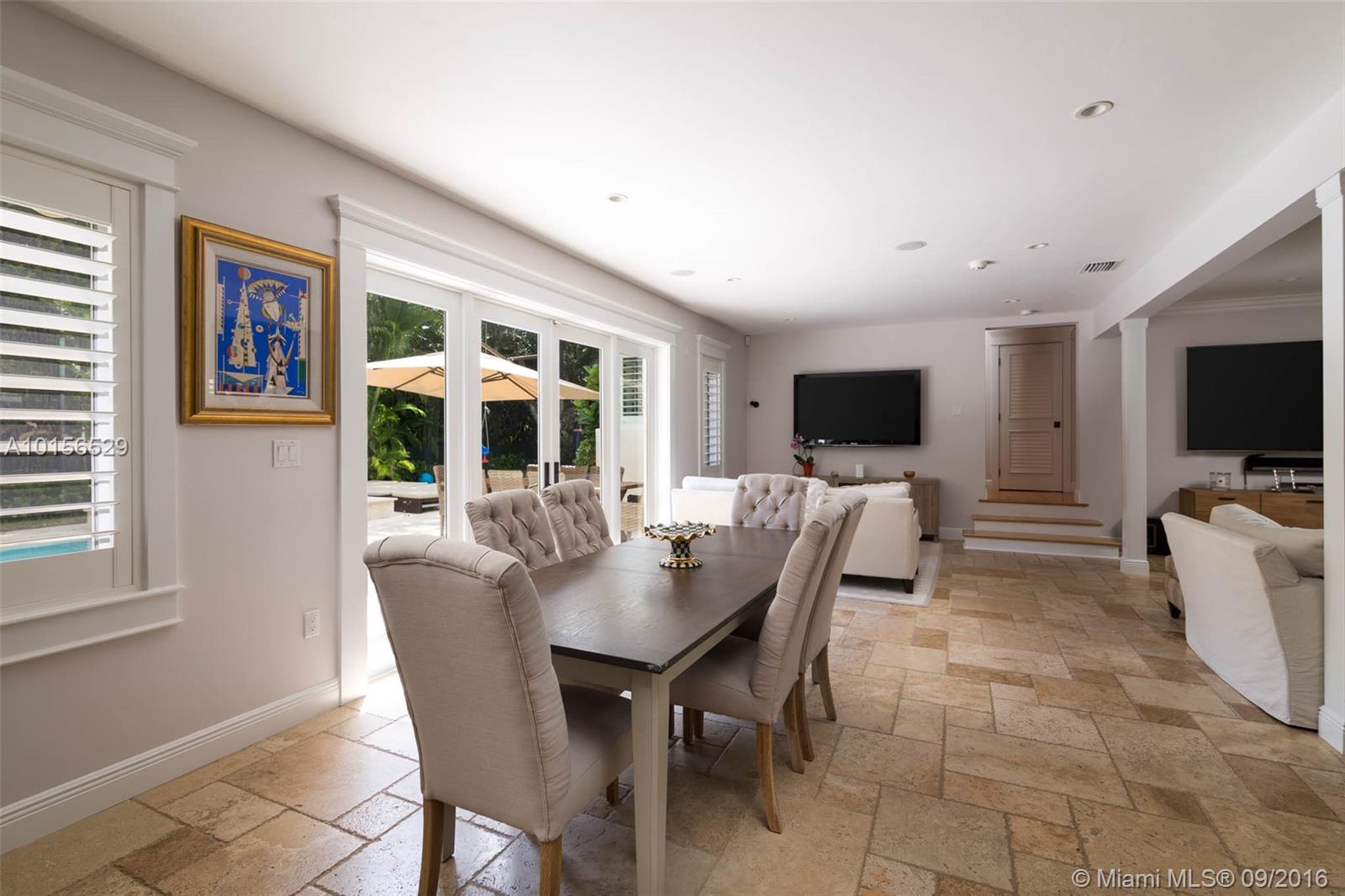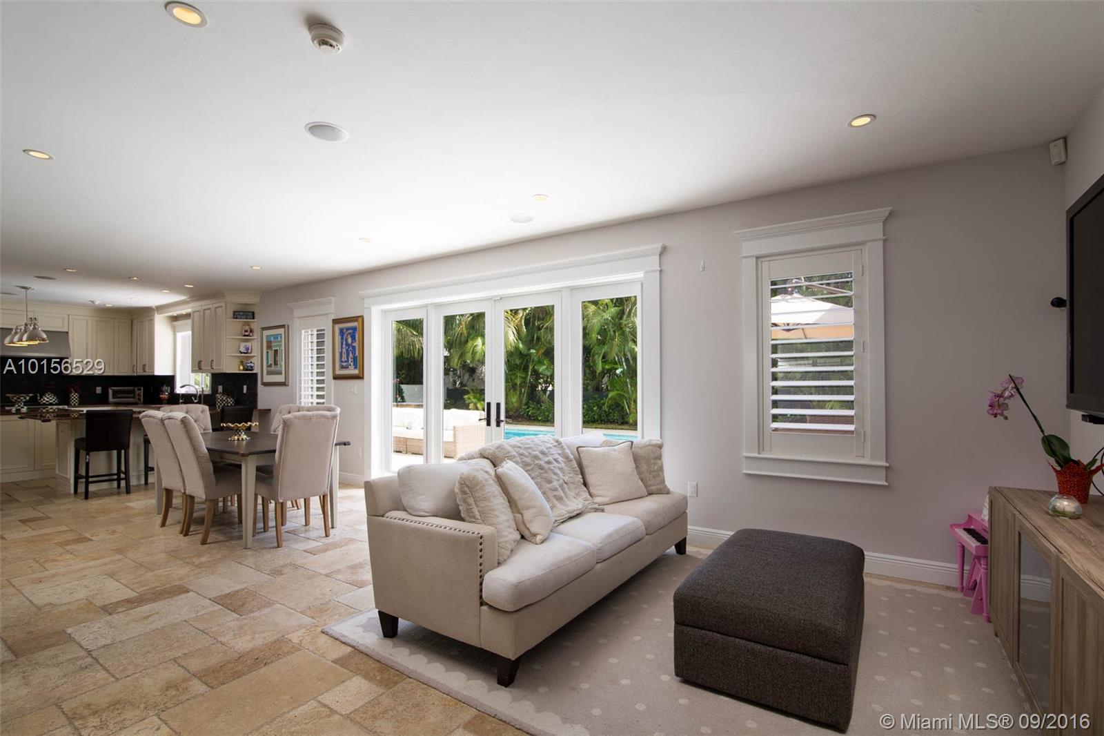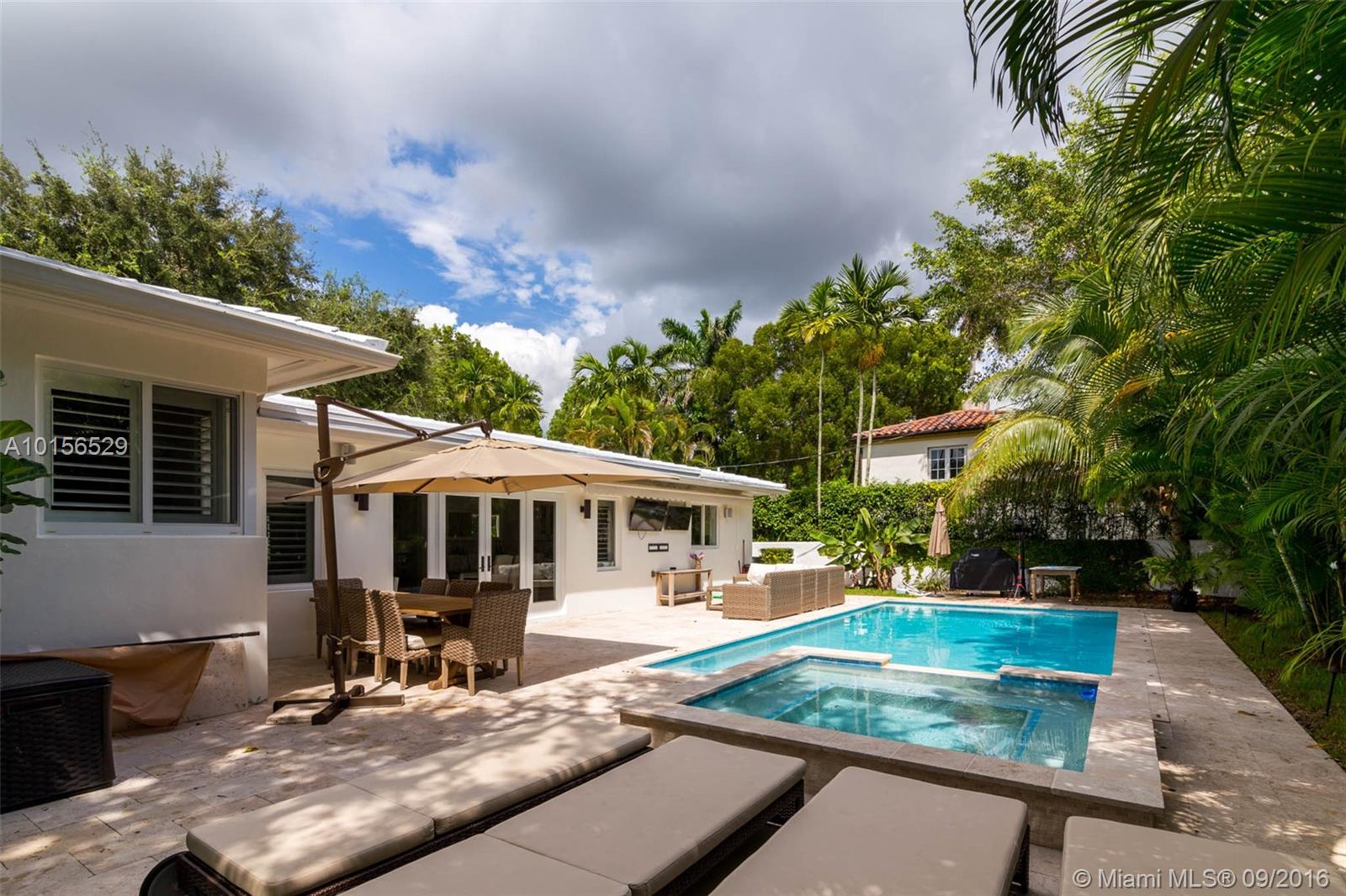 Beautiful 3/2 plus large pool & patio with light, bright & spacious open plan. Situated in prime South Gables on quiet, tree lined, low traffic street. Completely Renovated-2012 All New: impact windows/doors, plantation shutters, high ceilings in living areas, marble in living & baths, wood in bedrooms, AC, plumbing, appliances, LED lighting & surround sound system, landscaping & synthetic grass play area. Located near the best public/private schools & minutes from SoMi, Publix, Whole Foods, Sunset Place.