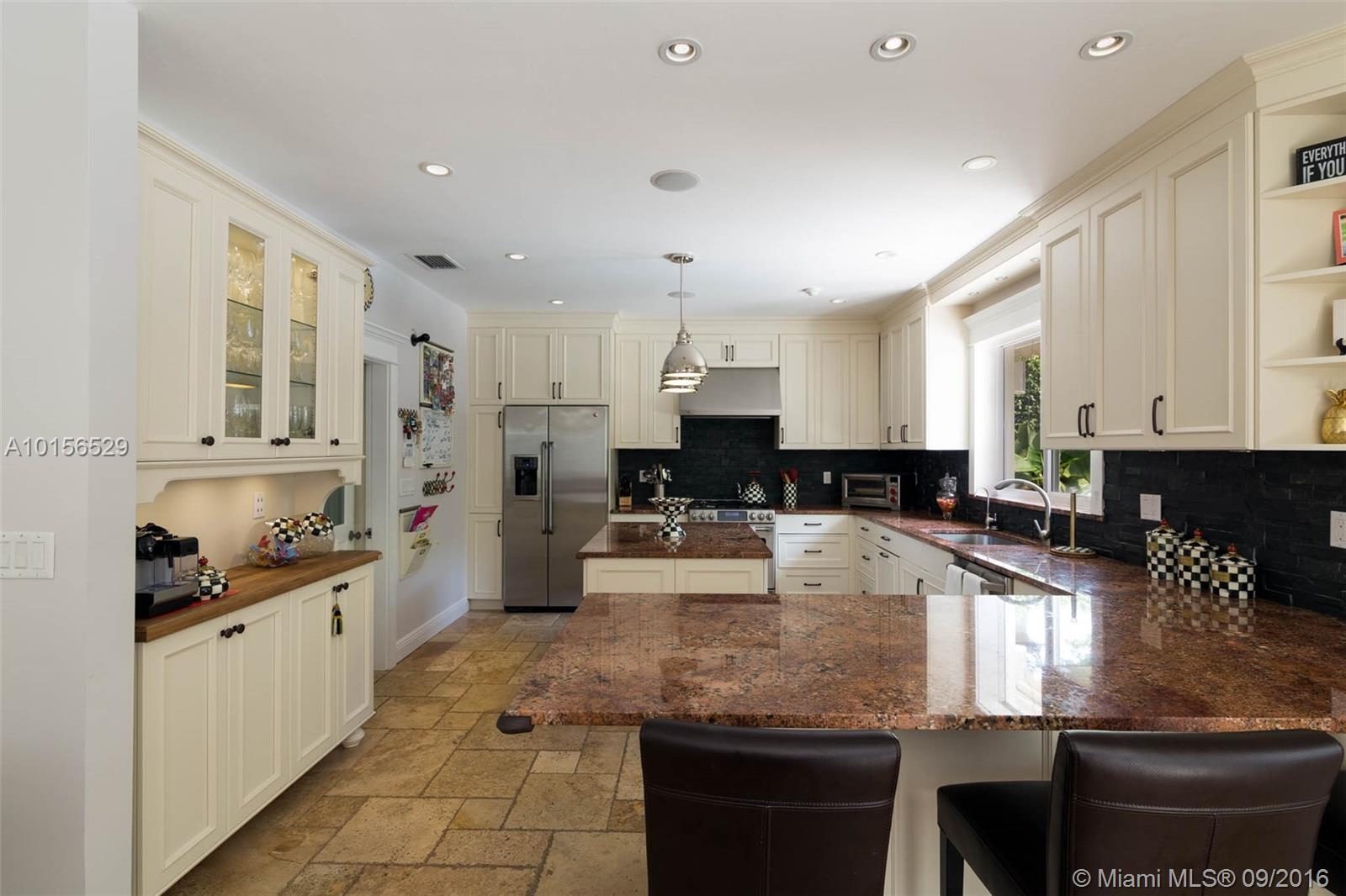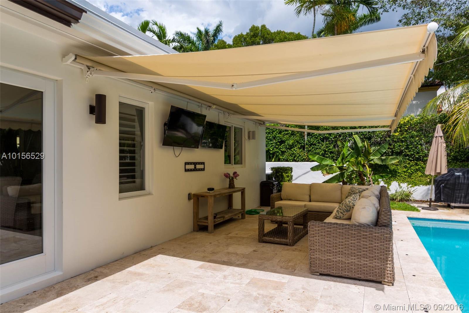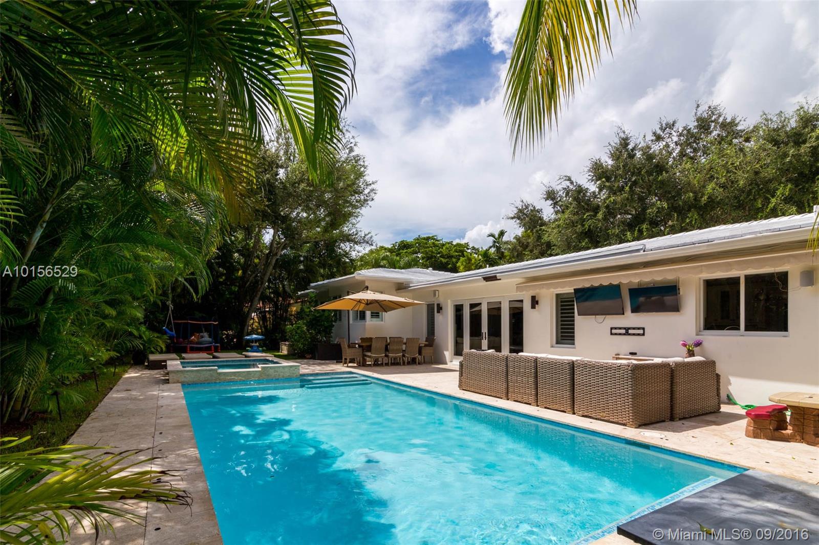 Beautiful 3/2 plus large pool & patio with light, bright & spacious open plan. Situated in prime South Gables on quiet, tree lined, low traffic street. Completely Renovated-2012 All New: impact windows/doors, plantation shutters, high ceilings in living areas, marble in living & baths, wood in bedrooms, AC, plumbing, appliances, LED lighting & surround sound system, landscaping & synthetic grass play area. Located near the best public/private schools & minutes from SoMi, Publix, Whole Foods, Sunset Place.