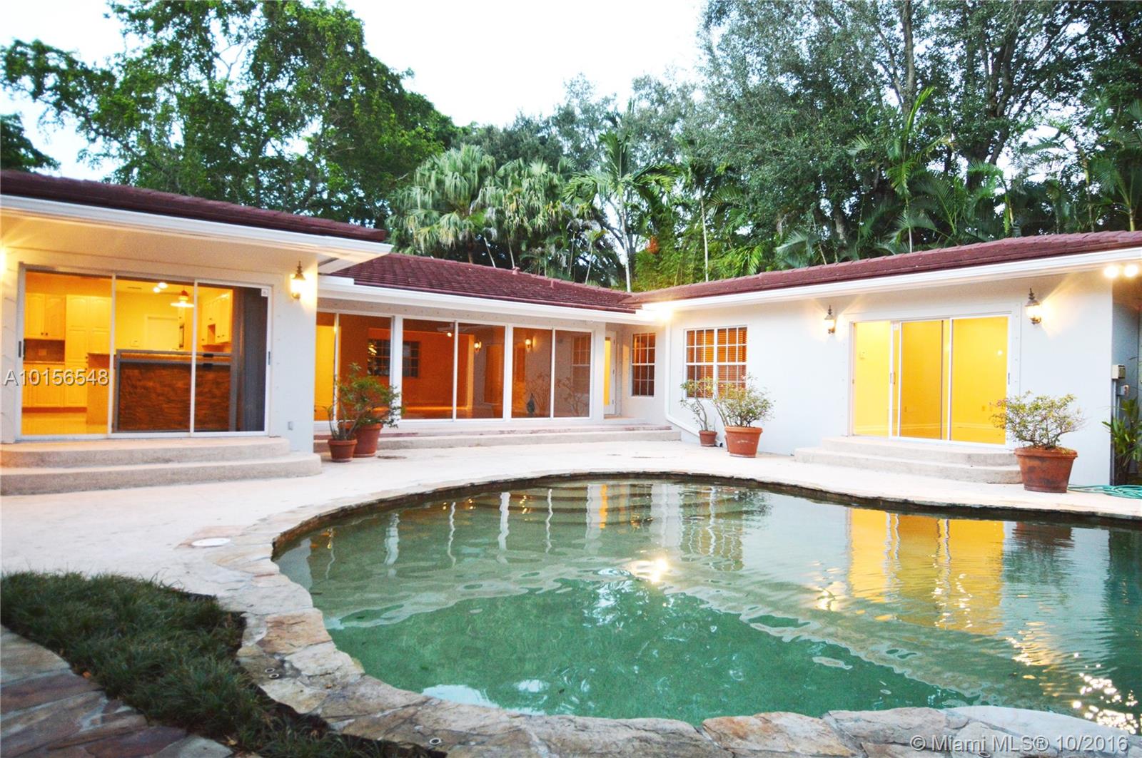 On a quiet, low traffic street in Coral Gables' prized "Golden Triangle" neighborhood close to the Library & Youth Center, the Venetian Pool & the Biltmore Hotel, find this roomy (close to 3000 square feet) 3 bedroom 3 bath 1950's home with high ceilings, gleaming oak floors, walls of glass doors looking out to a tropical paradise with a dreamy lagoon style pool with waterfall on a 10,4250 sq ft lot. Needs updating in kitchen & baths but very large kitchen & and master bath spaces to work with. Garage,