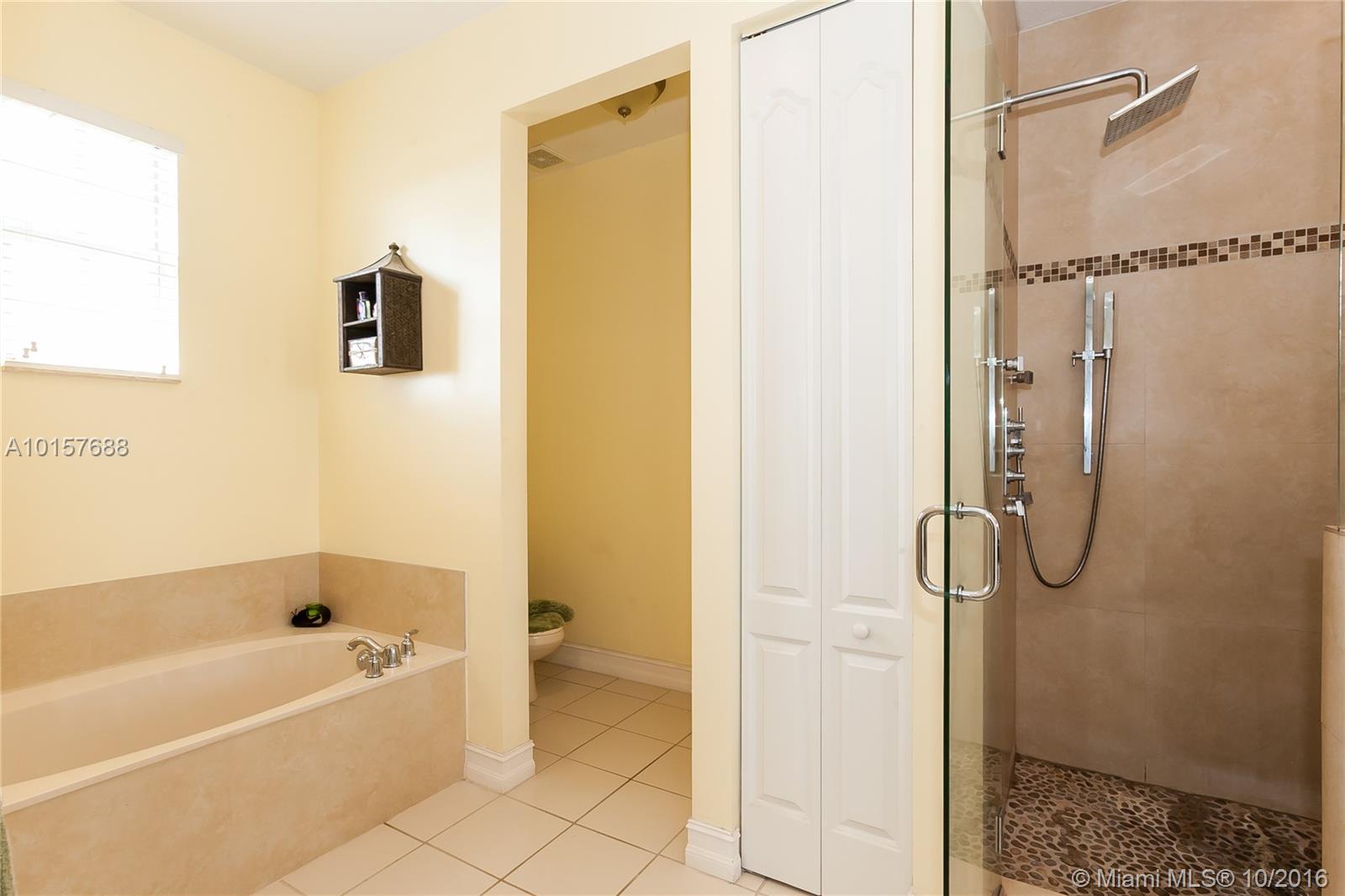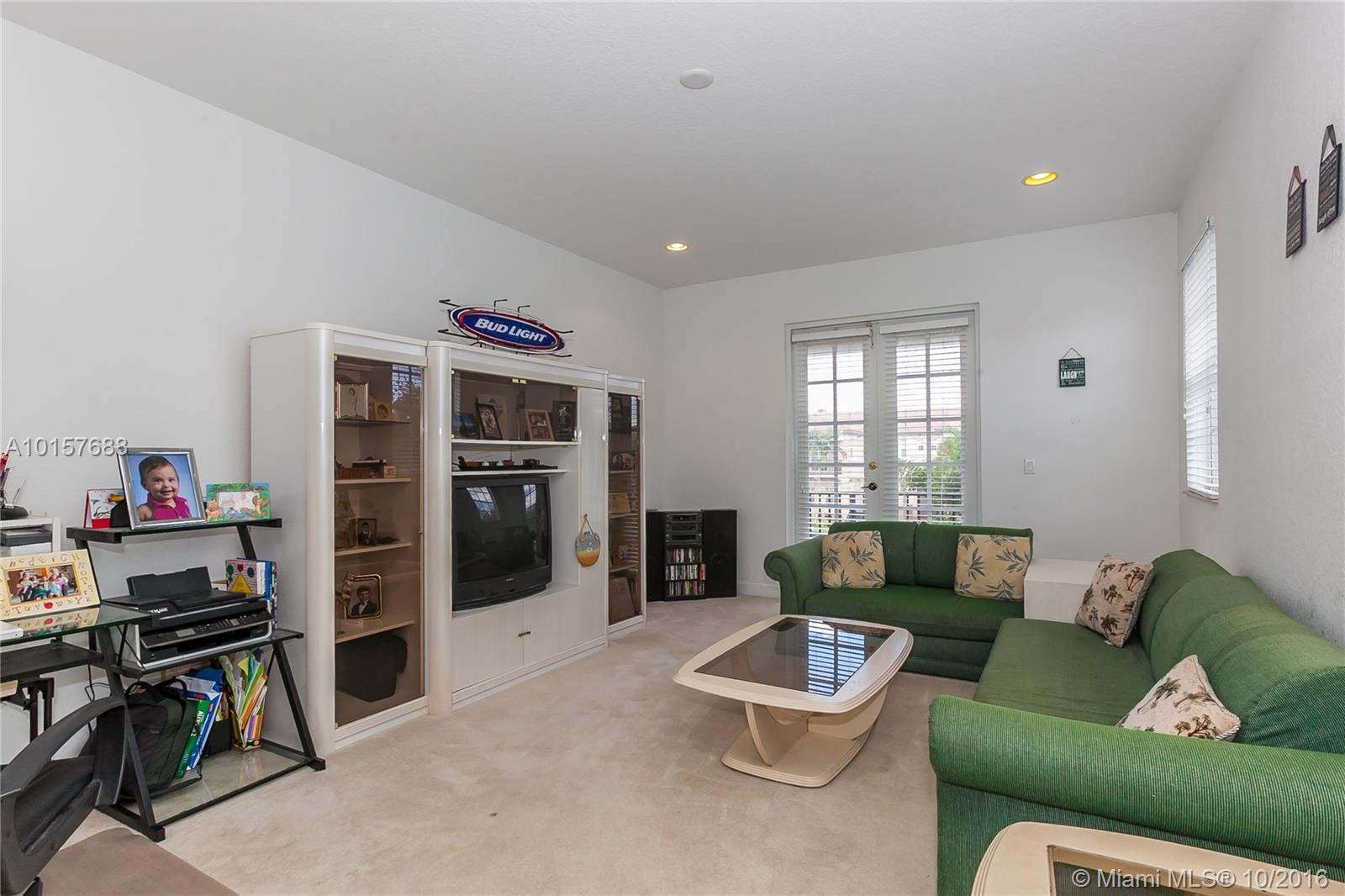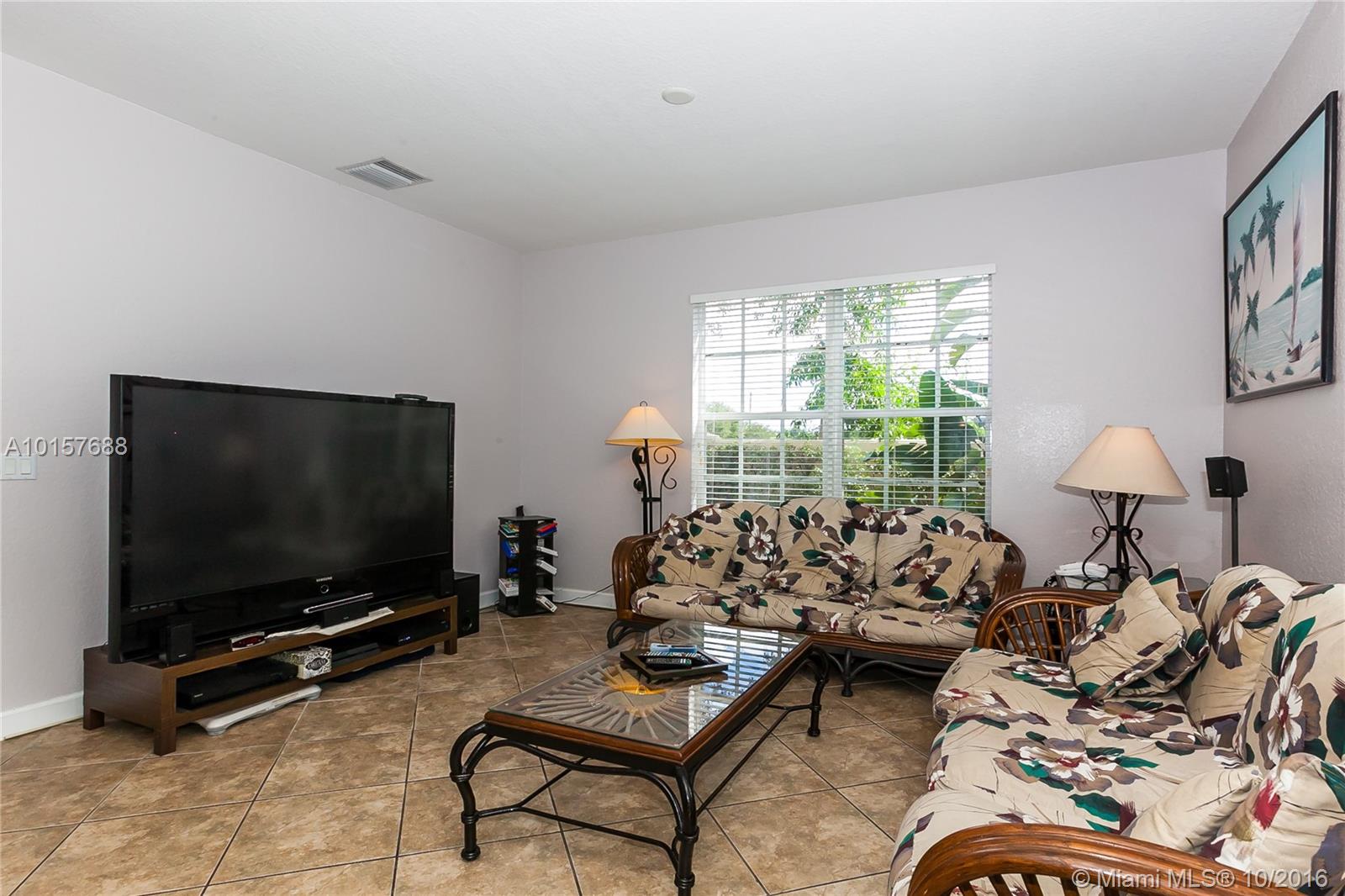 Rarely Available sought after Cimarron in Davie 3 bedrooms, 3 full bathrooms, plus a large Den and 1 car garage. One bedroom and full bath downstairs master is upstairs. Kitchen boasts Granite counters 42 inch wood cabinetry. Large Ceramic Tile floors Through living the area downstairs. Volume Ceilings, crown molding. Laundry room on the second floor. Master bedroom has his and her closets. Master bath has roman tub, large upgraded shower and dual vanities. Community Pool and playground.