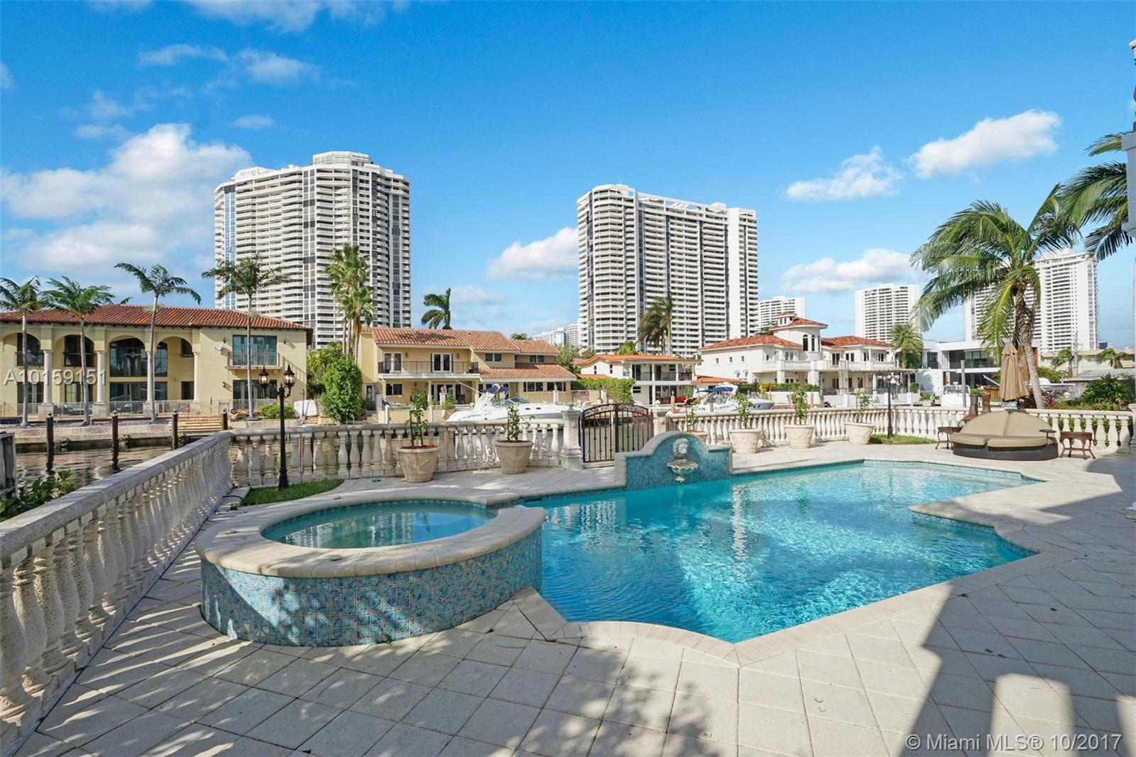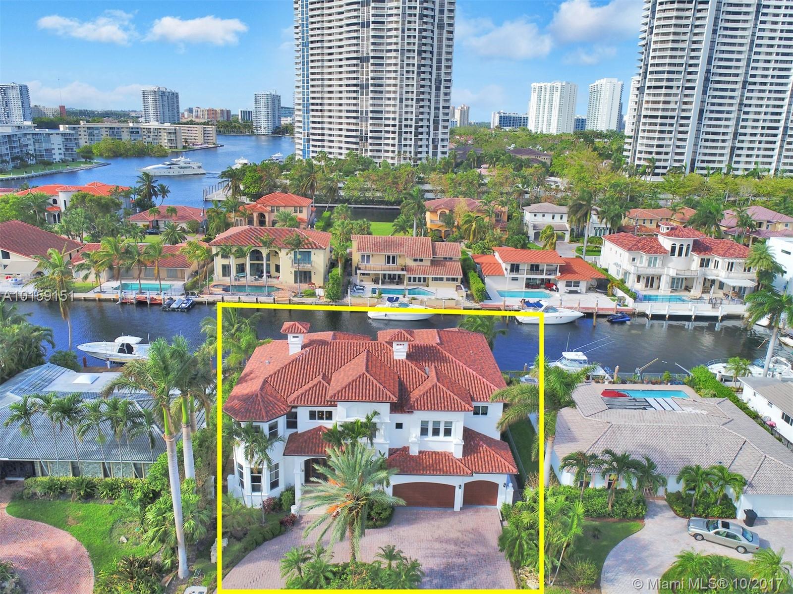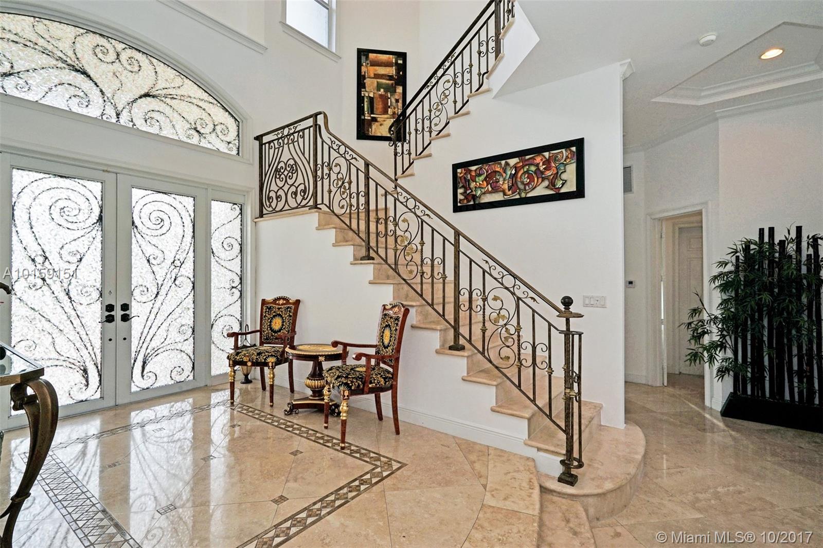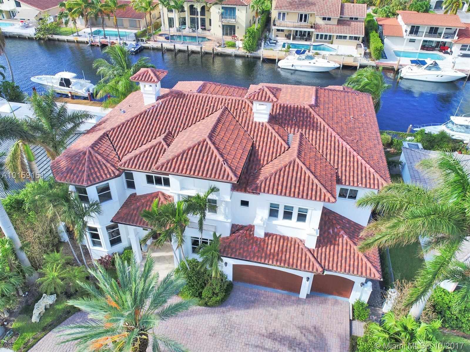 Magnificent 2 story Mediterranean-style waterfront estate w/ 80ft dock no fixed bridges to the ocean access, built in 2003 with many custom features throughout. This 5bdr 4 1/2bath property has open & spacious floor plan with grand foyer, elevator, vaulte d ceilings, columns, gourmet kitchen w/ custom cabinetry, grand master suite,office, Media room h/pool,Jacuzzi, 3 car garage. This property is located in the guard-gated community of Eastern Shores.